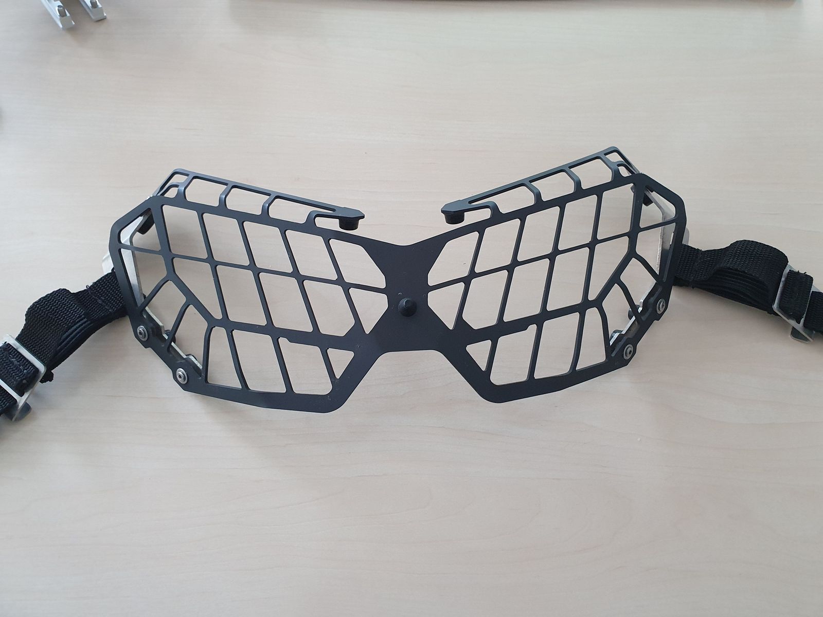 Beim Kauf meiner AT war ein Lampenschutzgitter montiert, dieses wird mit Riemen hinter der Verkleidung eingehakt und lässt sich bei Bedarf (allgemeine Verkehrskontrolle oder TÜV