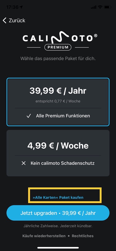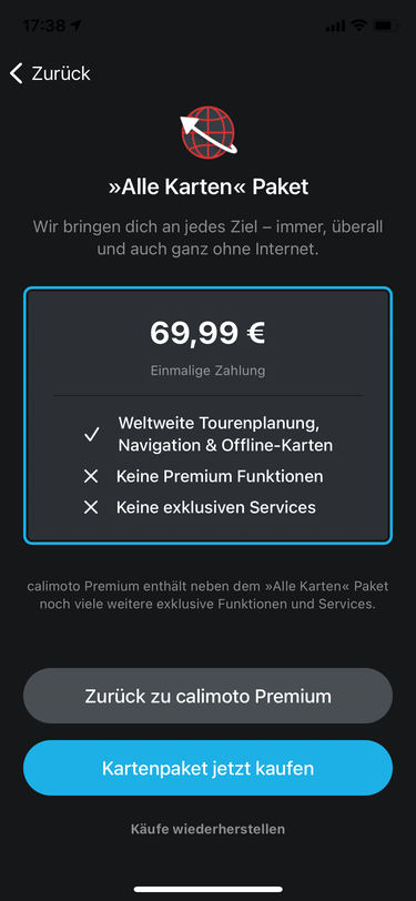 ist doch in diesem Fall völlig wumpe, oder? Mit dem Gutschein sollte man Calimoto im AppStore buchen können ... oder gibt’s keine Abos auf Gutschein? Habe ich noch nicht gemacht