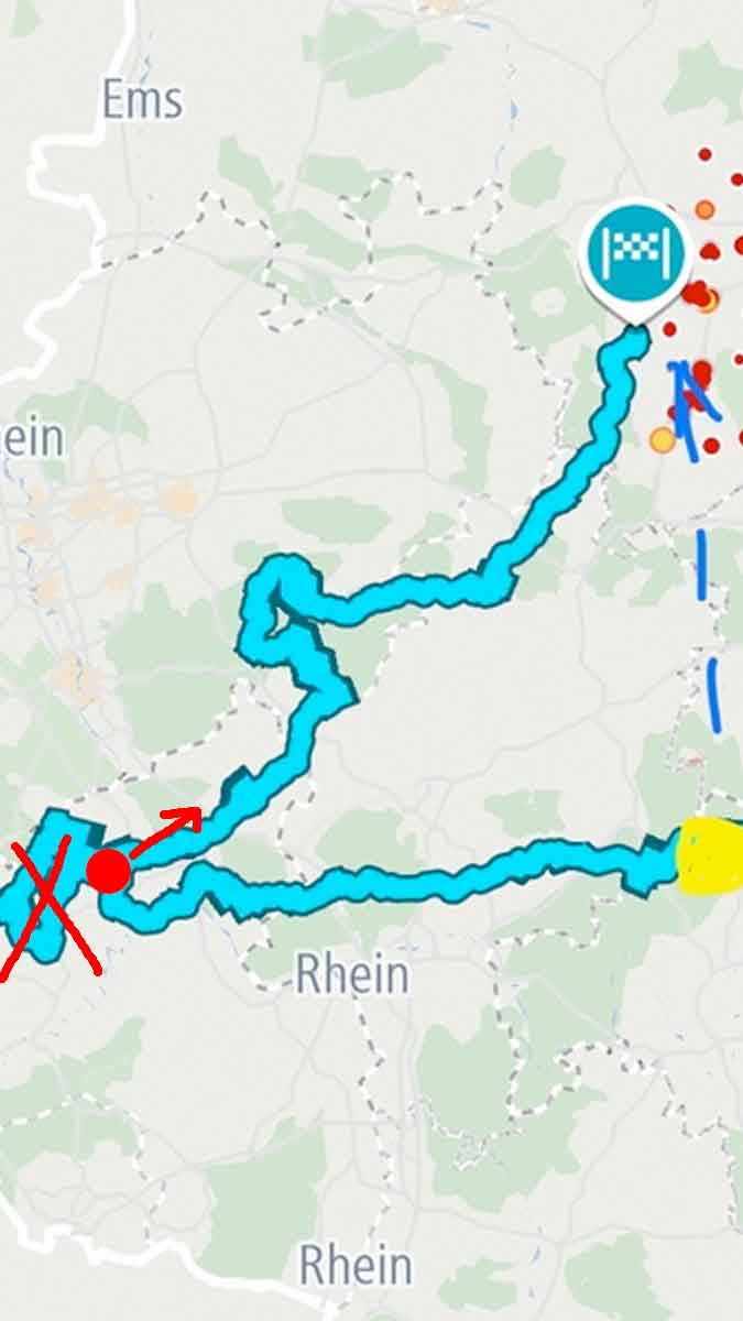 Alles anzeigenWenn man bei Punkt 3 in die hufeisenförmige Tour einsteigen und dann 4-20 fahren möchte, bevor man ans Ziel kommt, wird man von Punkt 3 direkt ins Ziel und nicht zu 4 navigiert (versteht man das???)