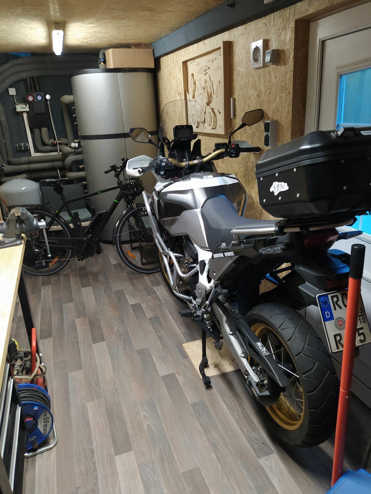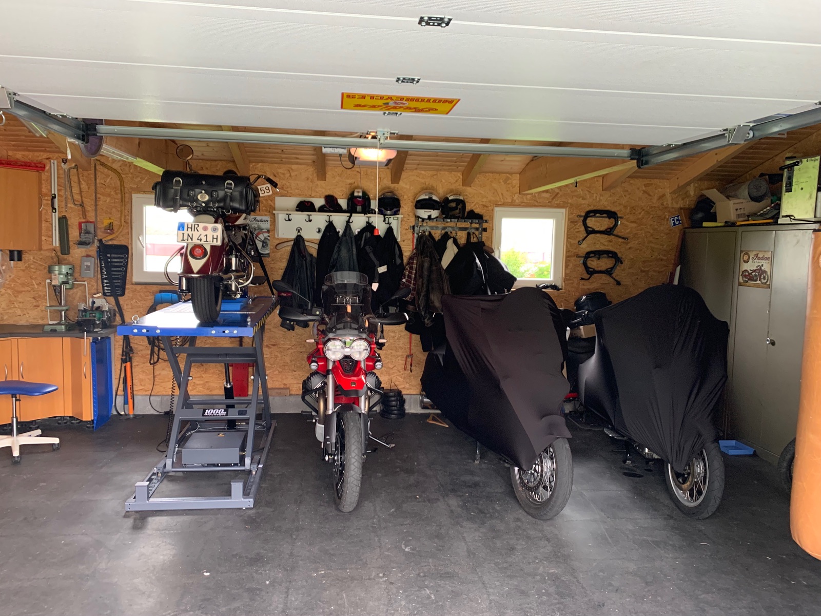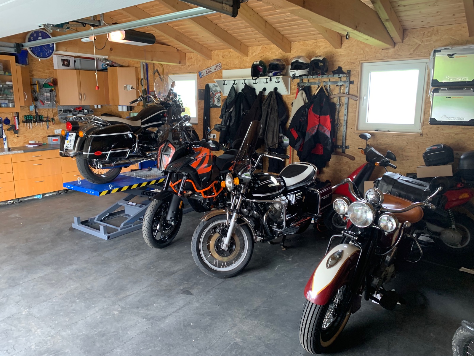 Die Motorräder stehen im Carport, dort wird auch "geschraubt".