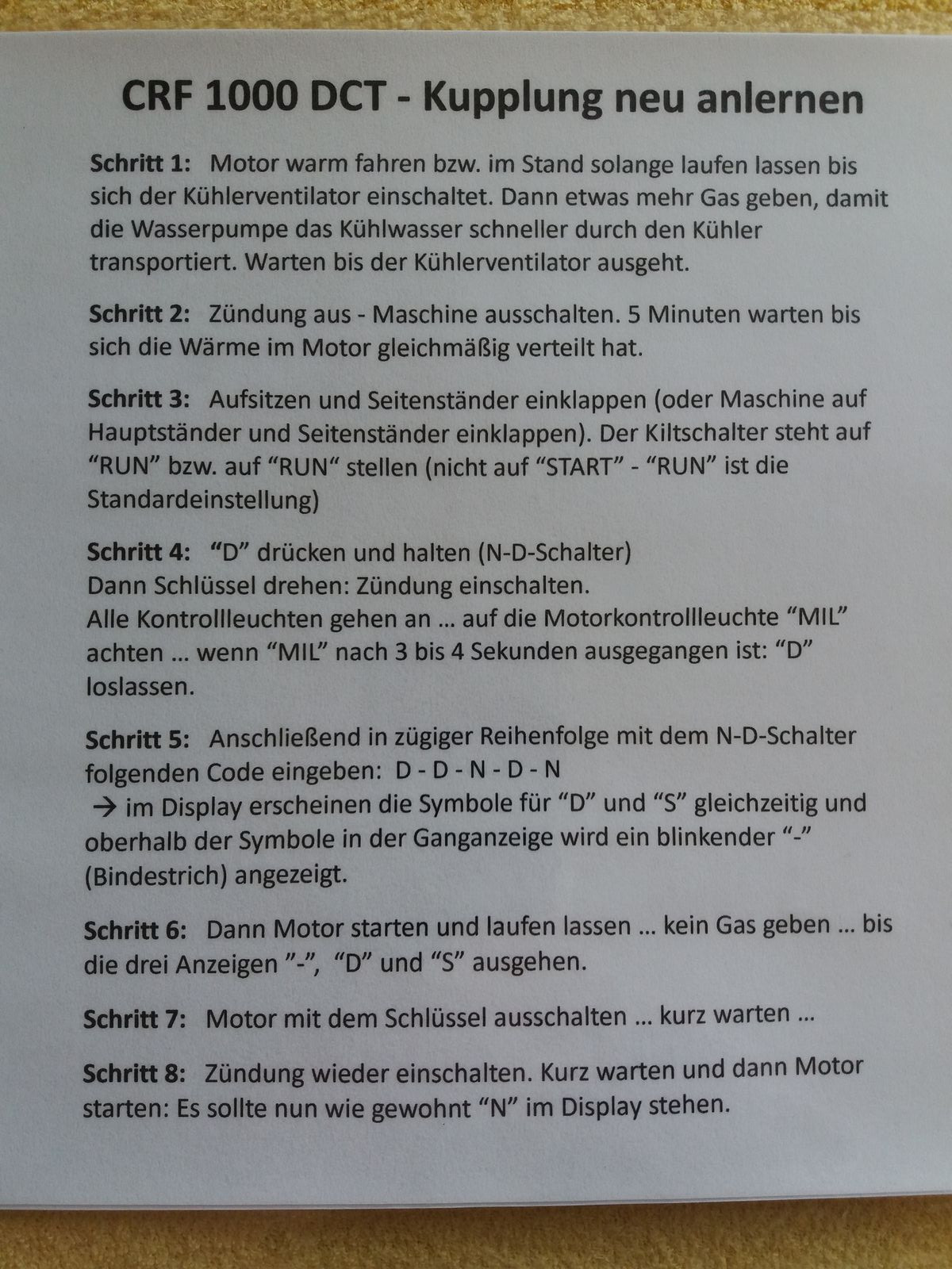 ich komme gerade von meiner ersten Ausfahrt nach dem Winterschlaf wieder und muss feststellen, dass das DCT Probleme macht. Bin ca. 100 km gefahren. 3x wollte das DCT überhaupt nicht hochschalten und blieb im 1. Gang. Unterwegs ist es dann mehrfach im 3. Gang hängen geblieben. Manuelles Schalten ging aber jederzeit problemlos. Die Maschine ist EZ 2019 und hat erst 5.500 km runter. Ich wohne auf Rügen und die nächste Hondawerkstatt ist ziemlich weit entfernt. Werde mich morgen aber wohl dorthin begeben müssen.