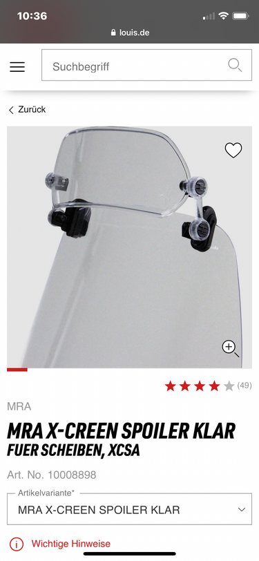 MRA Vario Spoiler klar mit Klemmung. Leichte Gebrauchspuren. 40 Euro. Verkauft