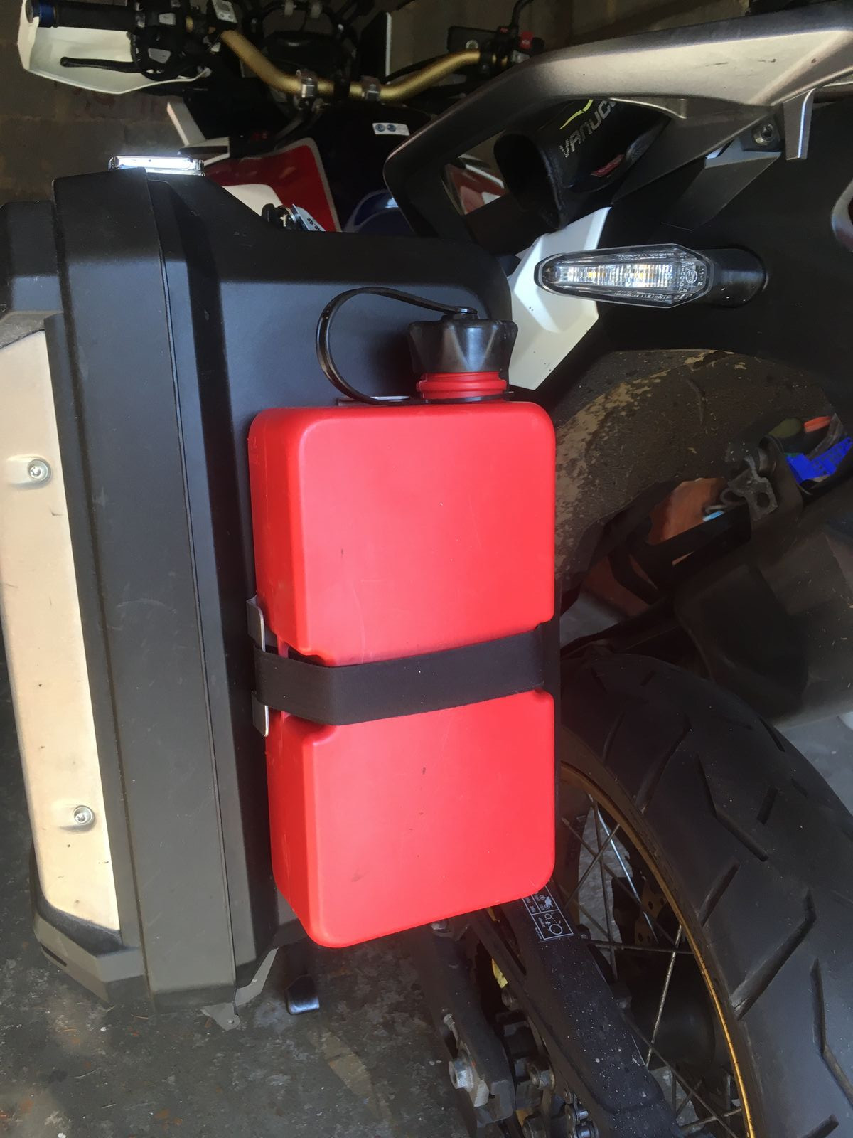 hat jemand schon mal einen Flaschenhalter oder kleinen Kanisterhalter für die org. Honda Plastekoffer (CRF1000) gebastelt ?