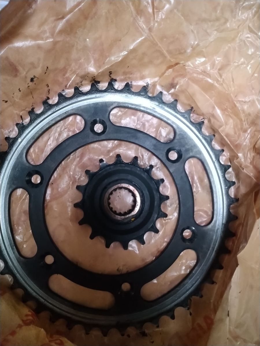 Die anderen zeigen die nun 17000km gelaufene und seit 12000km von einem OneOne Öler geschmierte, nicht gereinigte Kette von beiden Seiten. Man sieht den beginnenden Verschleiss vor allem am Ritzel. Würde sagen, die CZ Kette und der Original Kettensatz hatten 2/5 ihres Lebens hinter sich. Ich selber musste sie dreimal leicht spannen beim Reifenwechsel.