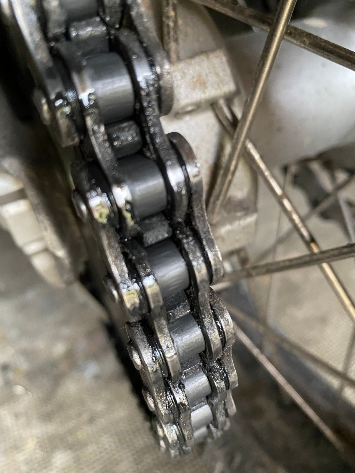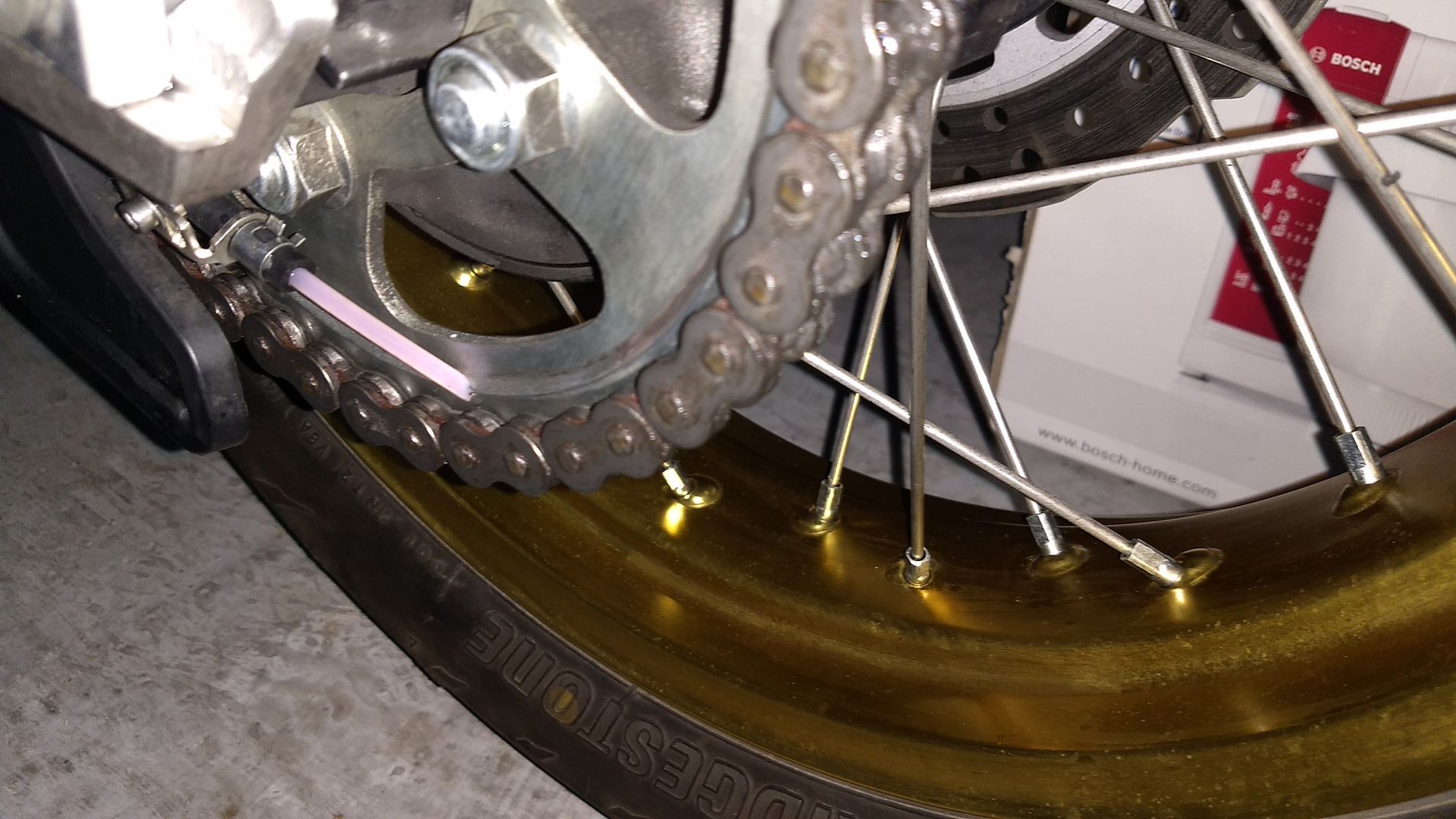 Heute die KTM etwa 150km im Mischbetrieb (schmale Strässchen, Schotter) bewegt. Vor der ersten Fahrt mit dem OneOne die Kette vom Schmodder befreit und mit einem Lappen gereinigt; dann bei der Wegfahrt 1x betätigt und am Schluss 2km vor dem abstellen in der 50er Zone 1x betätigt. Die Drossel ist 3/4 Umdrehung offen.