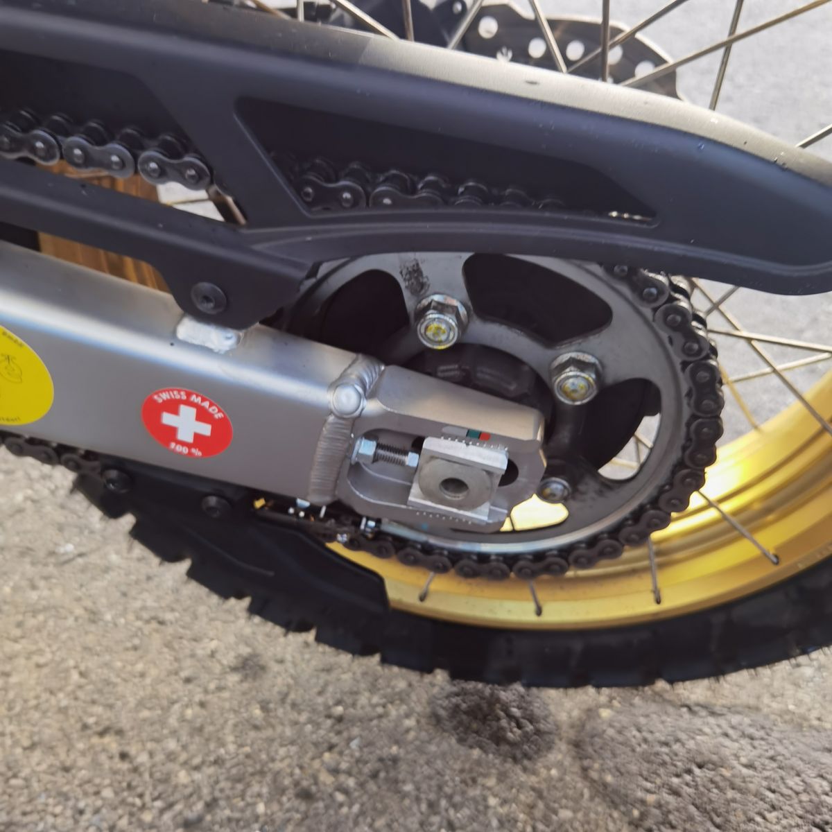 Da ich die letze Zeit zu 80% bei nasser Fahrbahn/Regen unterwegs war, sieht die Felge derzeit recht gesprenkelt aus. Nix was mich sonderlich verwundern würde und nicht anders zu erwarten war.