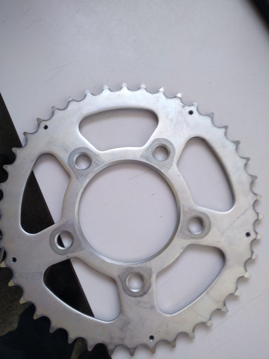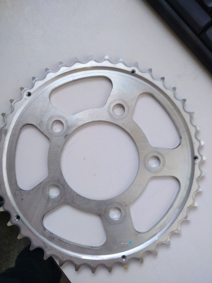 Das Blatt ist ein Original Honda CRF1100/42 Zähne mit ca 1500km Laufleistung. Sollte da ein OneOne`ler Lust und Mut zu einem Querbohrungsversuch haben, darf er gerne zum Einbau vorbeikommen.