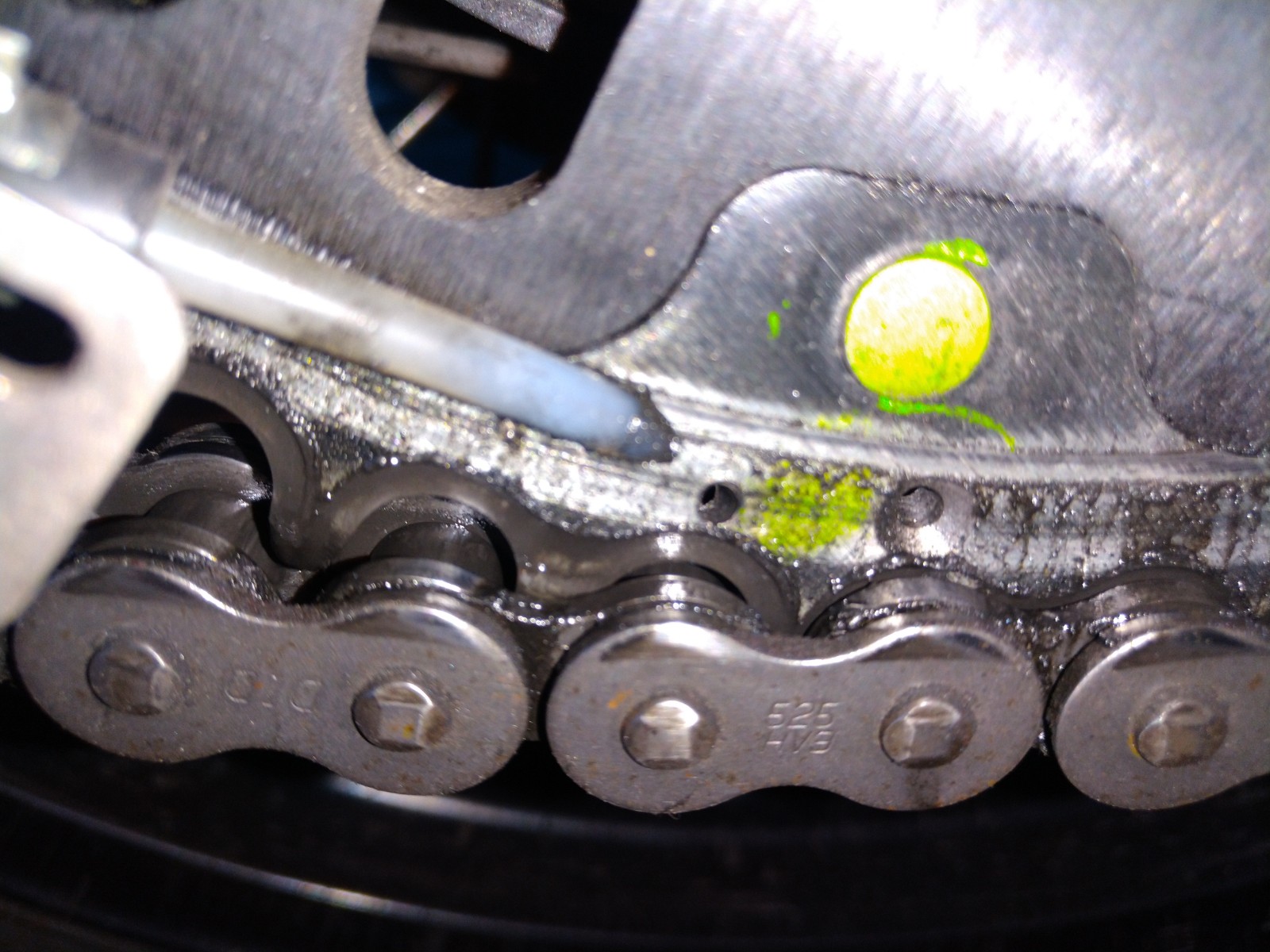 Da ich eh die halbe Zeit vergessen hatte, wann ich nochmal ziehen muss, hab ich potentiell zuviel am Öler gezogen. Die Folge war dann nachher, dass meine Felge recht versaut war. Aber lieber die Felge versaut, als die Kette kaputt.