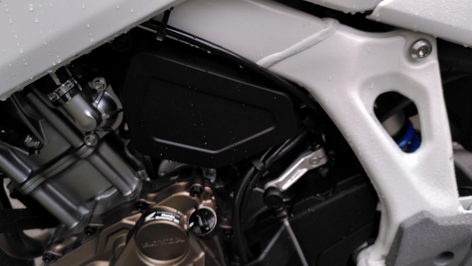Ich reinige die KTM ausschliesslich mit dem Dampfstrahler. Zuwendung in Form von Lappen oder sonstigen «Verwöhnmitteln» bekommt die zwischen den 10’000km Wartungsabständen nicht, ausser Fett beim Seitenständerscharnier und bisschen Silikonspray bei den Lenkerschaltern. Ist schliesslich ein Fahrzeug und kein Putzzeug