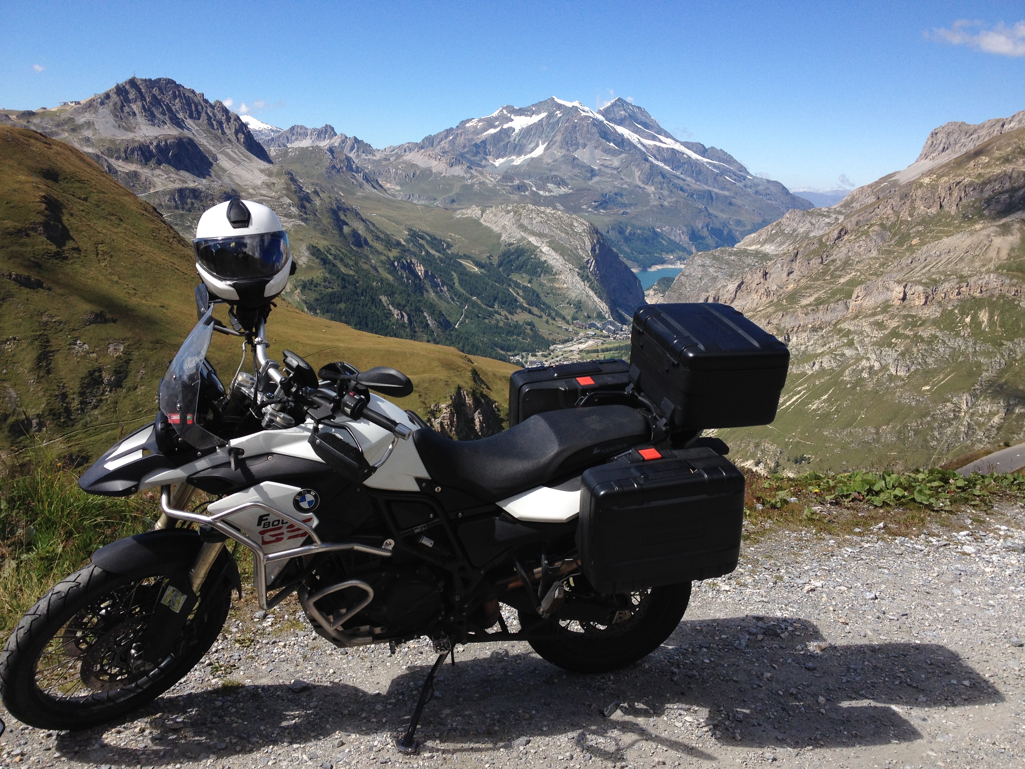 Bei mir kommt das Koffersystem der Vorgängerin drauf: Givi Trekker Outback mit 37 + 48 + 58 = 143 l Stauraum. Ich finde die Koffer sehen gut aus, bieten viel Stauraum, sie sind abschließbar und alles ist schnell an- oder abgebaut. Wenn ich bei Tagestouren die Kameraausrüstung dabei habe, stecke ich sie in den Seitenkoffer, das Topcase ist für Verpflegung, warme Jacke für abends und den Helm/Handschuhe, wenn ich das Motorrad abstelle und vielleicht mal ne Stunde zu Fuß unterwegs bin.