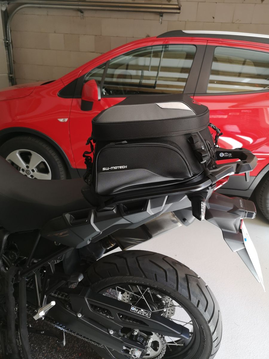Deckeltaschen: SW-Motech Trax (absolut wasserdicht, gut gepolstert, stabil auf den Koffern montiert, nehmen sogar mein Reisestativ auf)