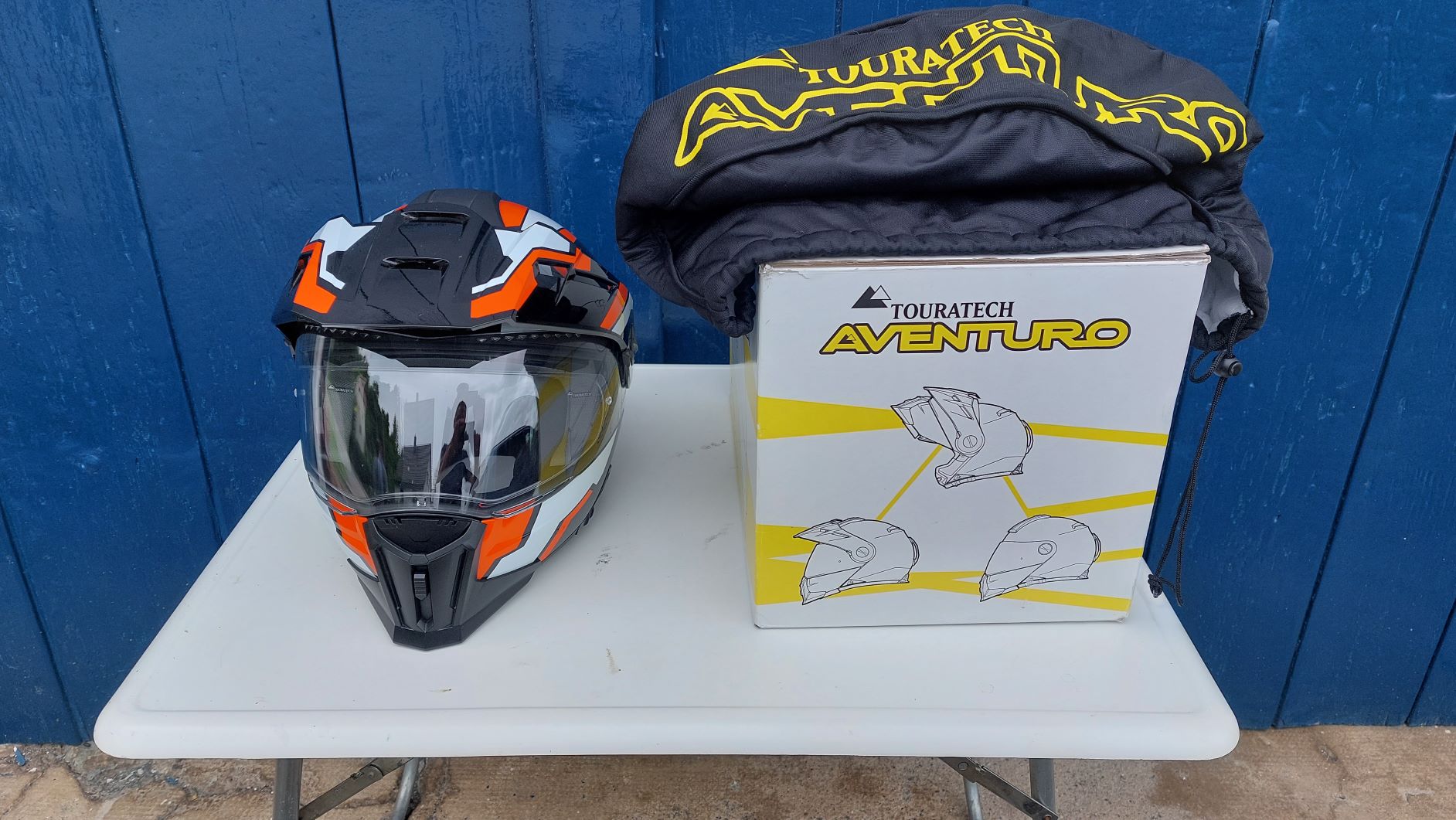 Leider muss ich mir eingestehen, trotzdem dass ich von der Funktion (Belüftung, Lautstärke), der Ausstattung (Schirm, Sonnenblende, Klapphelm), der Qualitätsanmutung und nicht zuletzt vom Aussehen begeistern bin, ganz einfach keinen Schuberth Kopf habe. Wie bei allen Schuberth-Helmen ist L zu eng und XL etwas zu weit, weshalb ich den Helm letztes Jahr nur noch 5 mal auf kurzen Hausrunden getragen habe. (Eine Probefahrt war nicht möglich im Gedränge beim Active Adventure Event). Dieses Jahr ist Motorradfahren für mich aufgrund einer Bandscheiben-OP und weiteren Blessuren ganz ausgefallen. Die paar km, die ich fahren konnte bevor´s nicht mehr ging, wurden mit dem Shoei GT Air gemacht. Der Aventuro Mod ist daher zurecht als NEUWERTIG zu bezeichnen.