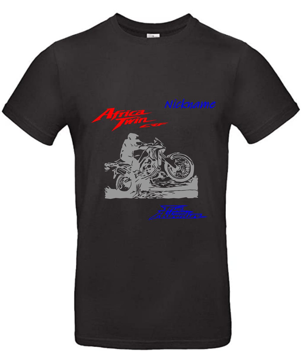 Ich fände es auch cool, den Africa Twin Schriftzug mit dem mit dem Wheelie vorne drauf und das andere Logo mit dem TrueAdventure Schriftzug nach hinten.