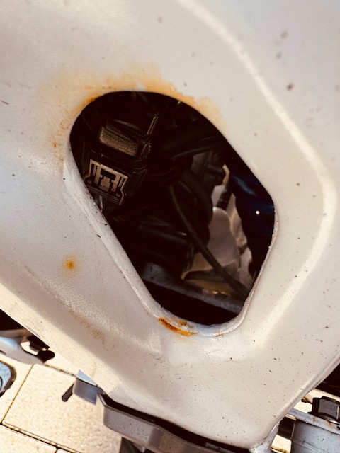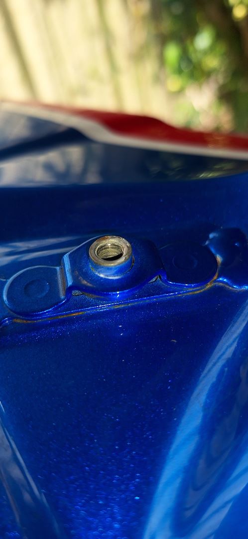 habe heute beim Abbauen der vorderen Tank-Verkleidung etwas Rost bei den aufgeschweißten Muttern entdeckt.