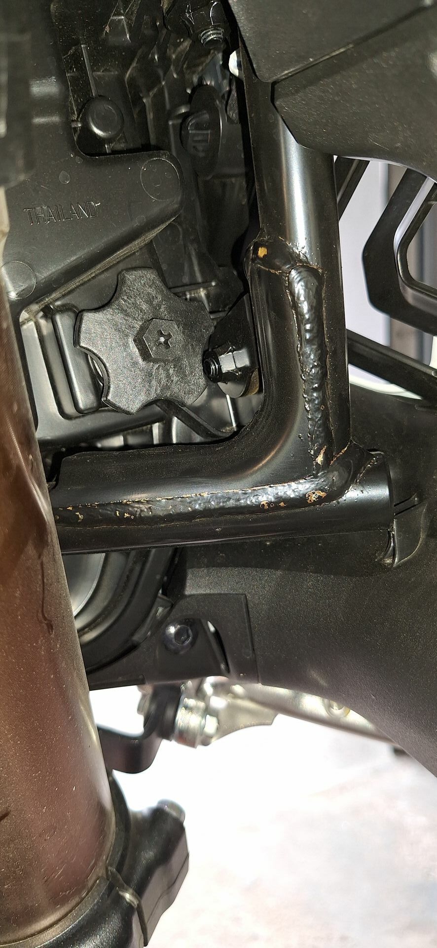 Update: Rostbefall ist ja aufgenommen und es heißt abwarten. Außer überarbeiten bei der nächsten Inspektion erwarte ich mal nicht zu viel. Der Griff wurde neu befestigt...geklebt und genietet...! Ursprünglich ist der nur mit einer Niete befestigt!! Wegen der Häufigkeit des Problems will Honda wohl eine Anordnung an die Produktion herausgeben, um diesen Mangel abzustellen. Aussage meines HH!