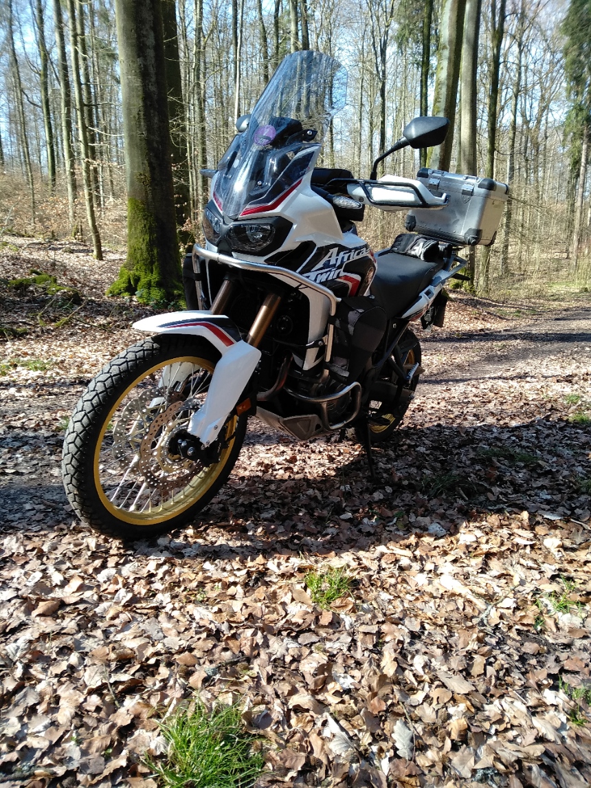 Honda Original: Griffheizung, Hauptständer; Griff Pushis, TT : Lenkererhöhung 20mm, TC Träger, Kofferhalter grade neu; SW Motech Tank Ring, Fender Vorne 3cm höher, Gelenkfußrasten MGZ Pivot 3, Fremdstartersteckdose und Stromversorgung für ZUB über Zündung unter der Sitzbank, Lenkertasche,