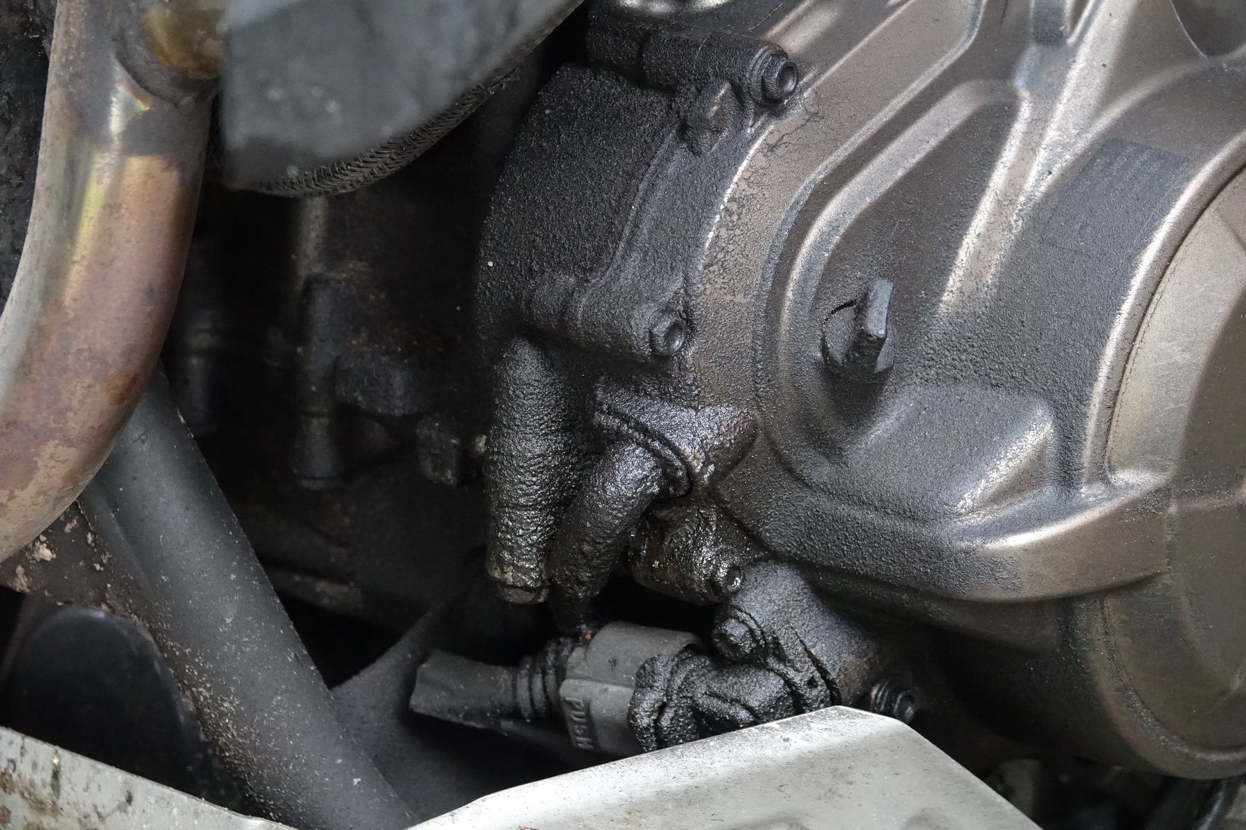 Hier hab ich ein Foto das möglicherweise genau passend ist. Die Ölmenge ist zur Zeit aber noch sehr klein. SD08 mit 48000km. Nur Öl außen am Motor, also nicht so ein schwerer Fall wie teilweise beschrieben.