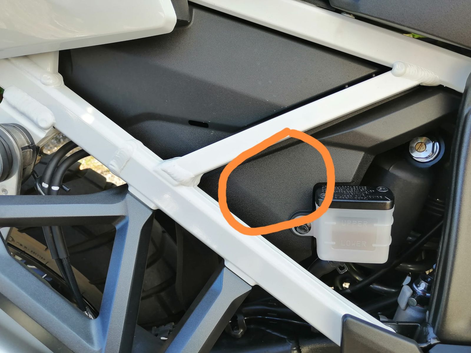 Wenn ich auf das Plastik drücke (Orange markierter Kreis auf dem Bild), wird das Geräusch schon ein Stück leiser.