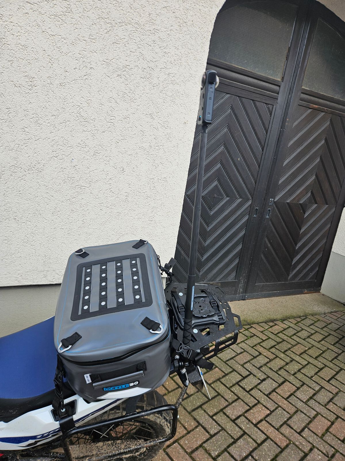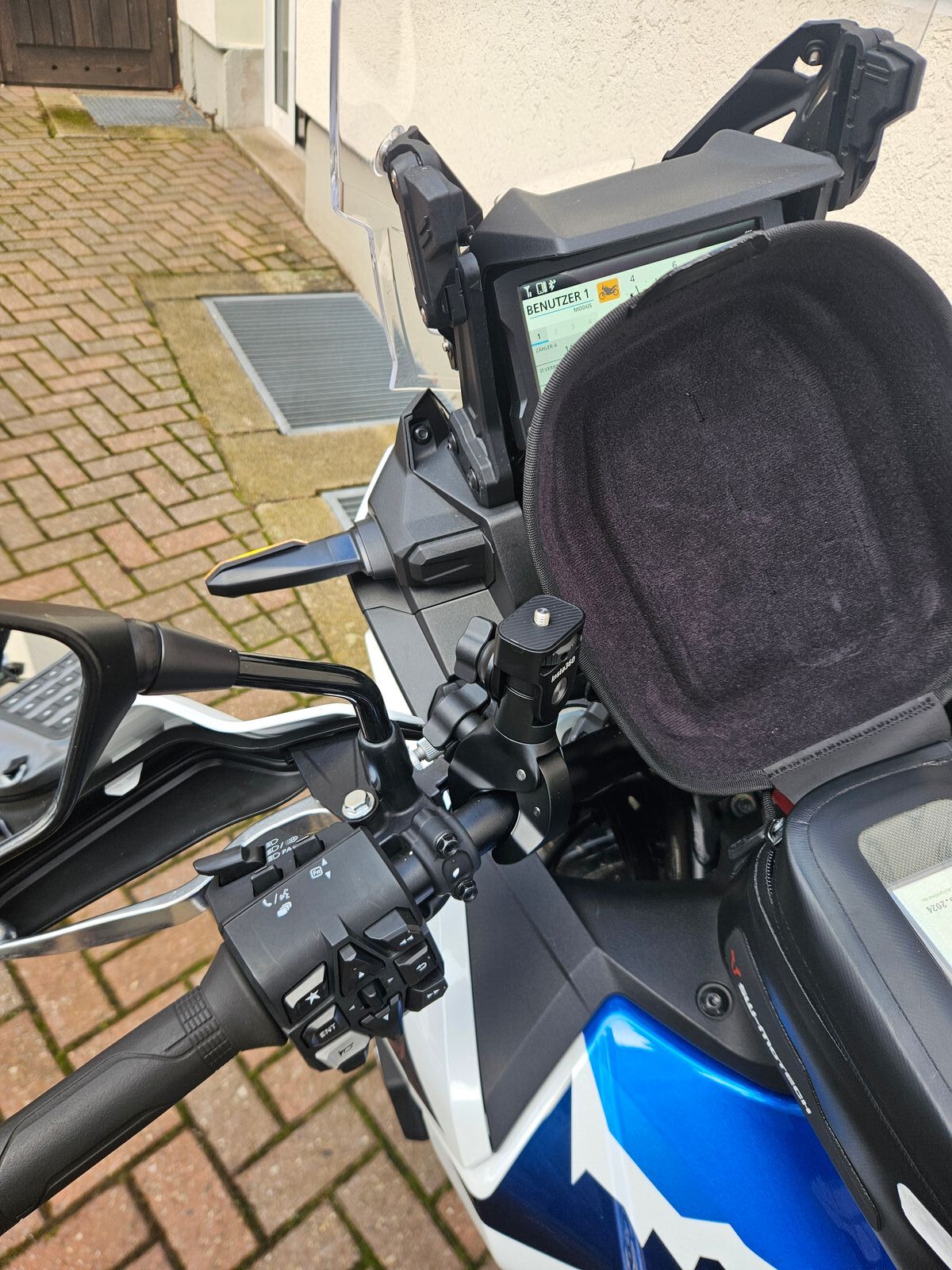 Anbringung am Motorrad hab ich erstmal so gelöst, dass ich die Kamera immer vom Sitz aus erreichen kann. Zwar nicht immer beim Fahren aber so spare ich mir jetzt erstmal die Fernbedienung.