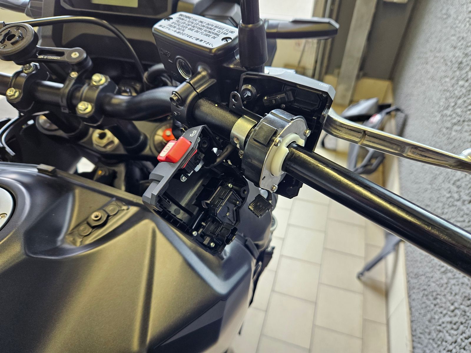 Hier ist anzumerken, dass die Verstellung vom Schirm sehr simpel geht und man das auch mal schnell an einer Ampel erledigen kann, je Seite gibt es einen Mechanismus, welcher entriegelt werden muss und dann einfach am Schimr ziehen/drücken.