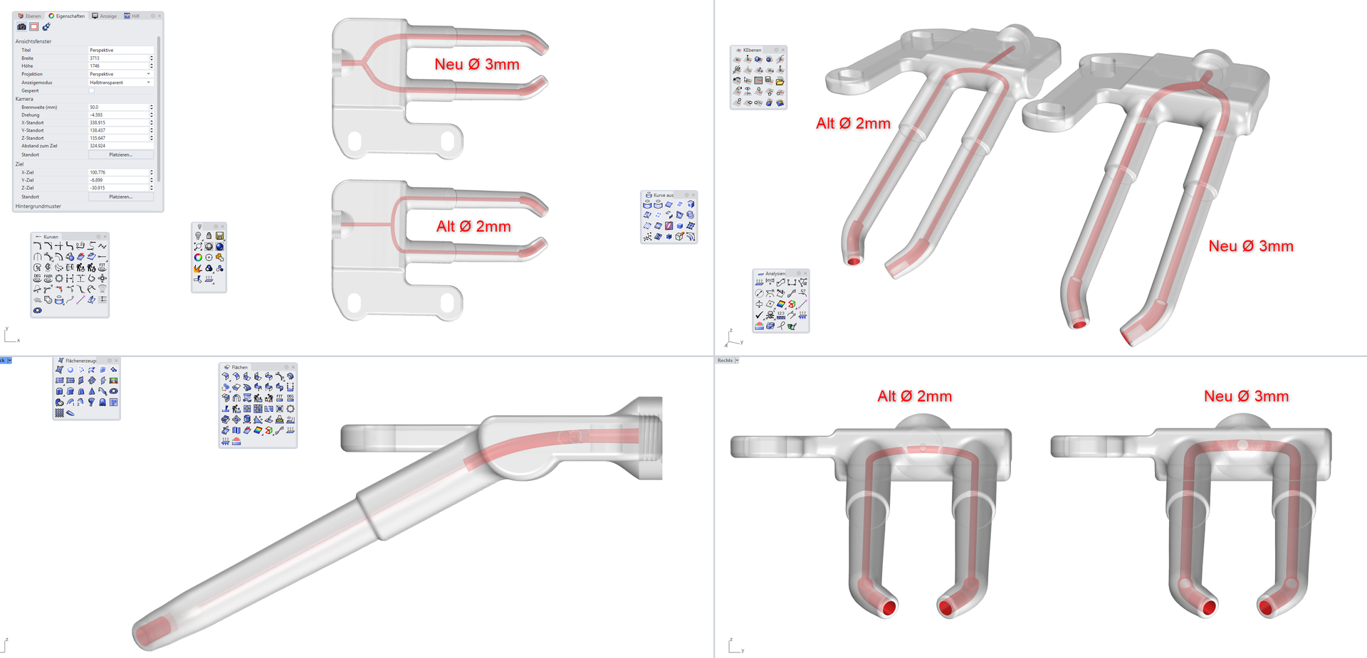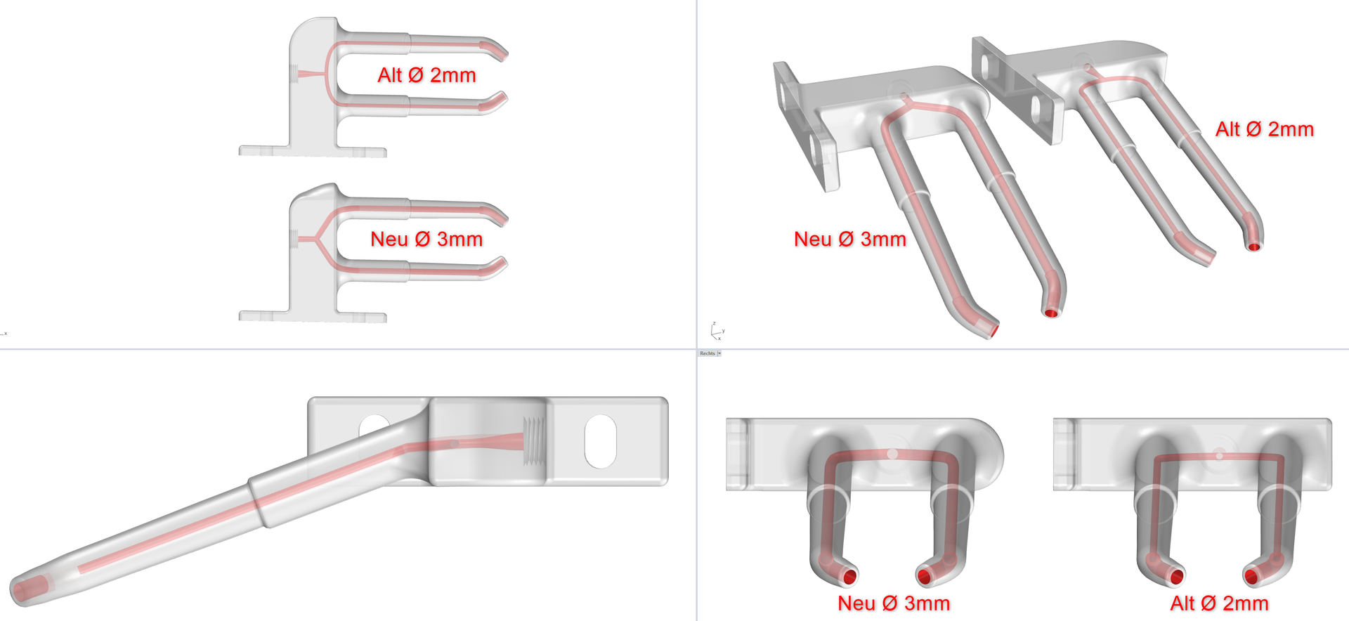 Normalerweise lässt sich das mit einem Draht oder einem Pfeifenreiniger beseitigen, aber ich habe dennoch nun den Durchmesser auf 3 mm angehoben, um Verstopfungen vorzubeugen.