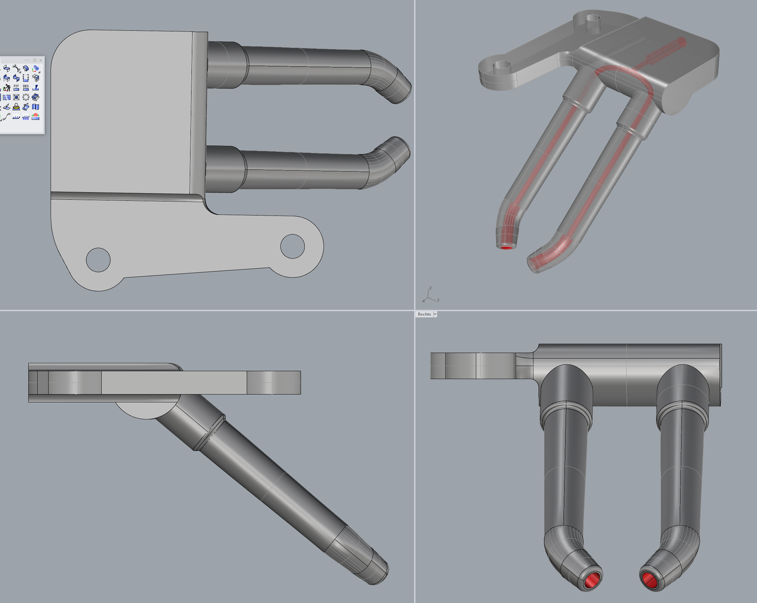 - die Doppeldüsen kommen zu weit nach innen am Kettenrad => ich werde mir ein Langloch in die hintere Bohrung der Doppeldüse feilen müssen.