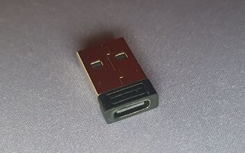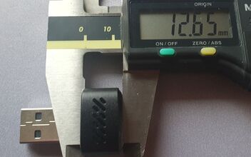 Das Dongle lässt sich über den USB-C Adapter gut einstecken, die Gummikappe geht aber natürlich nicht zu. Ohne Gehäuse wird es sicher auch nicht gehen, ich probiere es trotzdem aus. Ausstecken ohne Werkzeug ist schwierig, aber möglich.