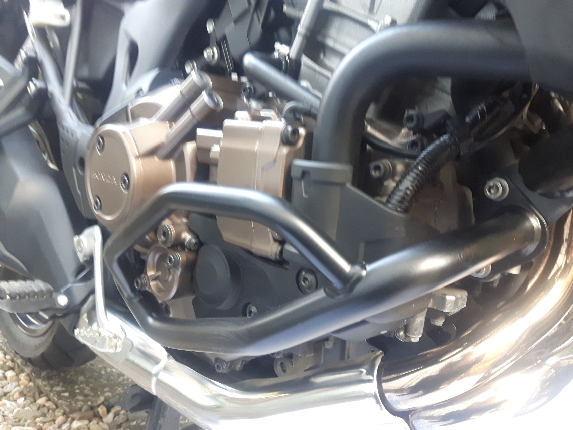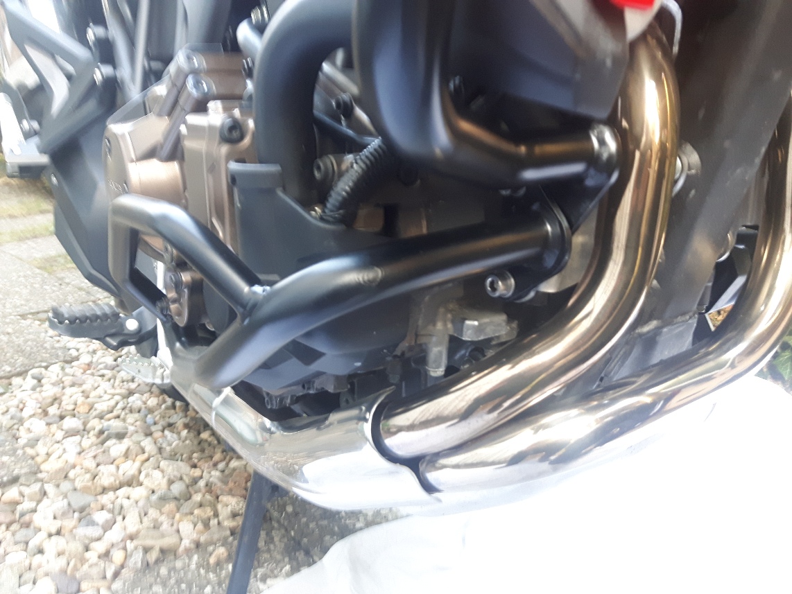 Beim Begutachten der Schäden ( Summe 6.500 € ) drängte sich auch bei meinem Schrauber wirklich die Frage auf, was mit Bügel weniger kaputt gewesen wäre. Der Motor hatte nichts abbekommen. Die oberen Verkleidungsteile waren an Stellen kaputt, die der Bügel auch nicht geschützt hätte. Tank, Lenker, Blinker, Spiegel, Gepäckträger und Fußrasten hätten vermutlich auch Aua davon getragen. Aber, vielleicht wäre das mit meinem Bein nicht so schlimm geworden, weil mehr Platz zwischen Boden und Fußraste geblieben wäre.