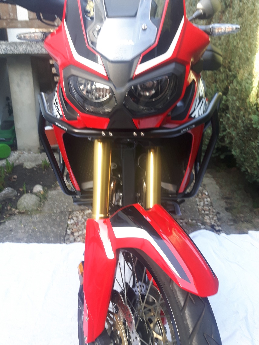Nach meinem heftigen Sturz am 12.6.2016 in Venetien hatte ich auch hin und her überlegt, ob ich Sturzbügel montiere. Hätte TT die Lieferbar gehabt, wären sie da schon dran gewesen. Aber, kaum war ich repariert aus dem Krankenhaus raus, riefen die an und verkündeten freudig erregt: Ihre bestellten Sturzbügel sind schon da!! Na gut, er versprach sie für mich aufzuheben.