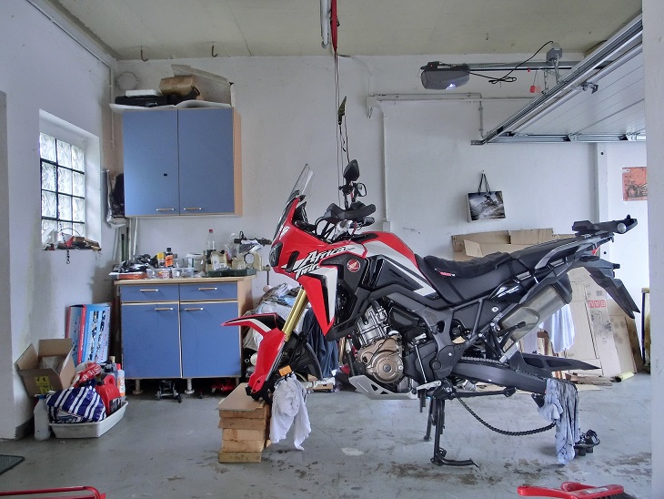 Die Verwendung des Wuchtbocks (diesen habe ich erst seit kurzer Zeit; bei meiner F 800 GS hatte ich den noch nicht) hat für mich den Vorteil, dass ich zumindest die Rad-Reifen Kombination auf einige Kriterien hin prüfen kann.