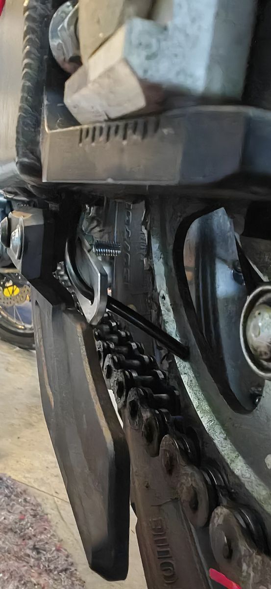 Den Schlauch habe unterhalb der Schwingen geführt und zur Befestigung einfach Kabelbinder nur um den Schlauch fest gezogen. Die offenen Enden habe ich zwischen Kettenschiene und Schwingen gezogen, vorne hinterm Rahmenschutz festgezogen und dann zur Sozius Raste.