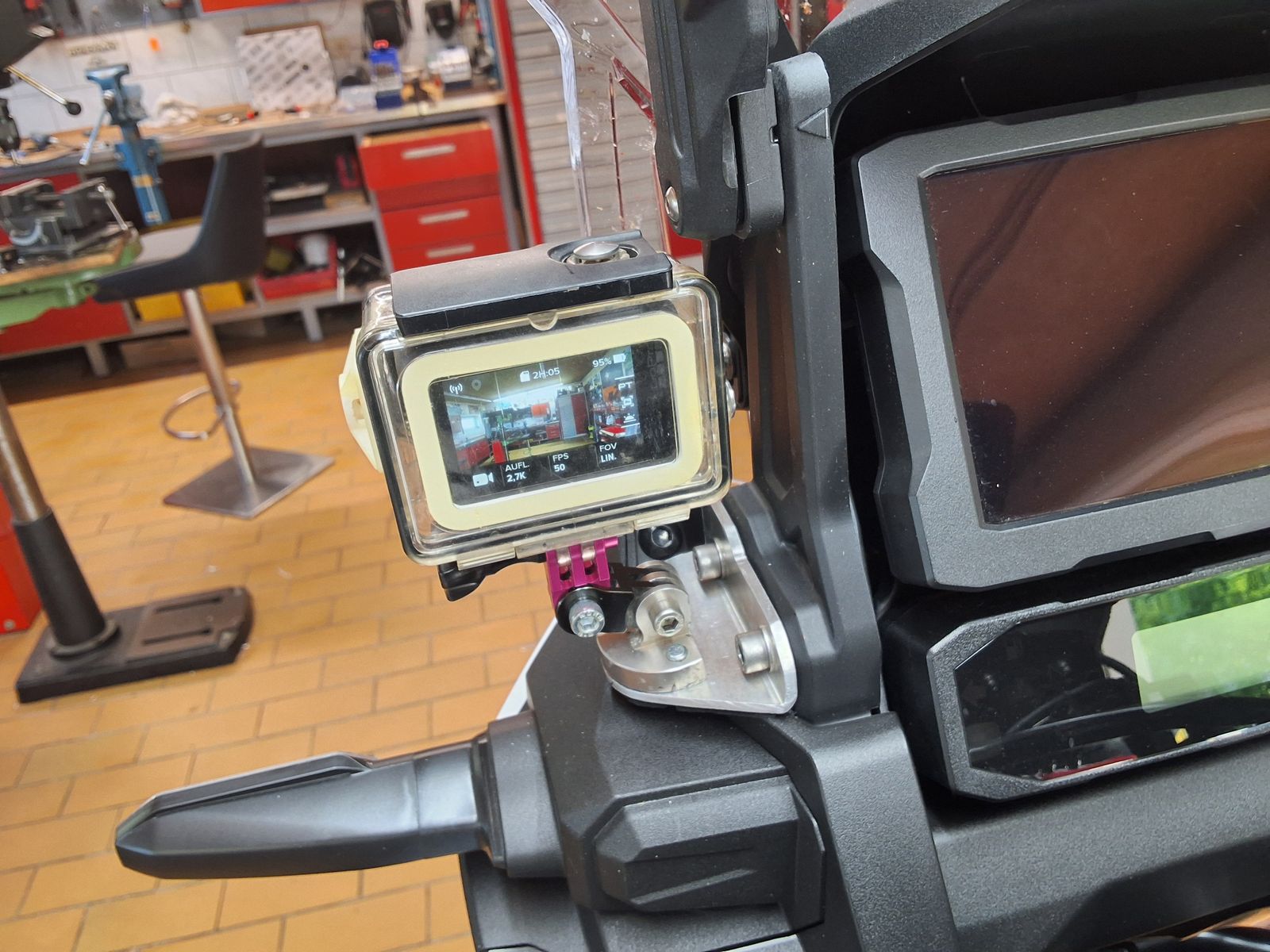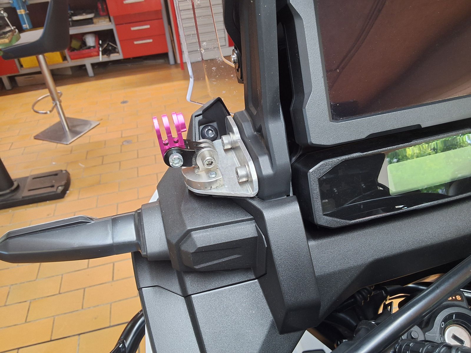 Nö, da ist die Halterung für das Display angeschraubt. Habe nur längere Schrauben genommen um die Maerialstärke auszugleichen.
