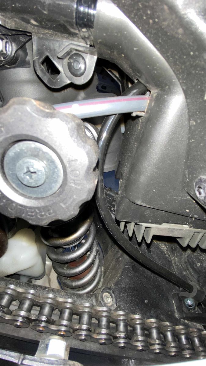 Eine große Schlaufe an der Federvorspannung des Federbeins gelegt.