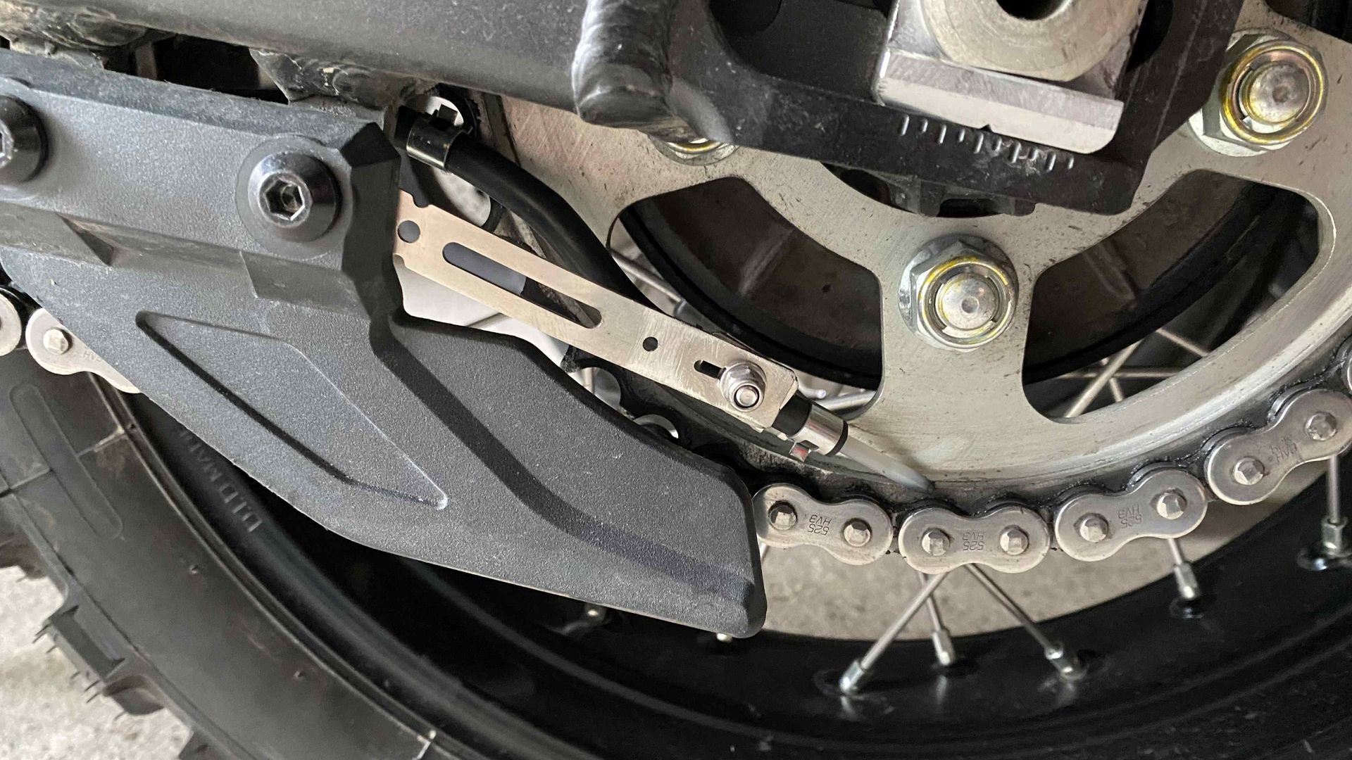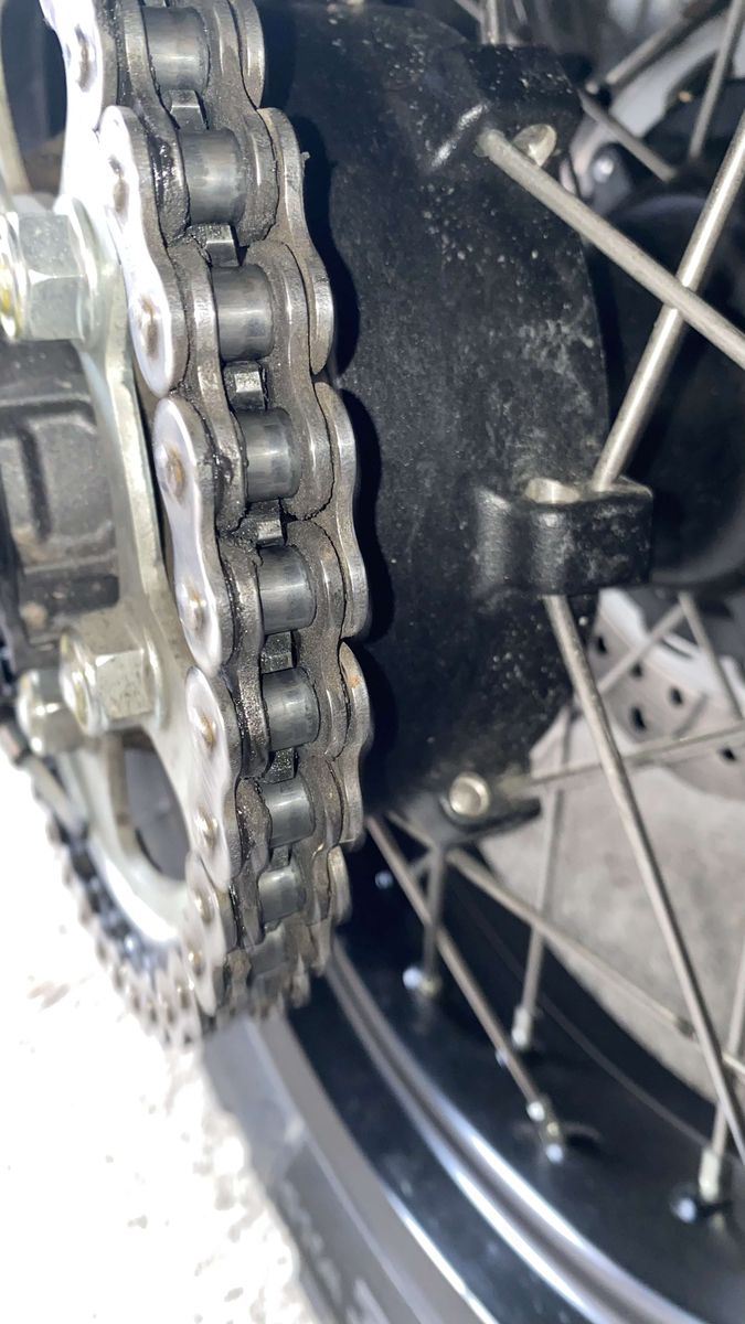 Ich habe die Kette nur mit einem Petroleum-getränkten Lappen abgewischt. Man sieht leider immernoch Reste von Kettenfett zwischen den Gliederlaschen. Hier sollte ich nochmal mit dem Kettenmax und seinen Bürsten ran. Da es ab kommenden Wochenende aber eh in den Staub geht, hebe ich mir das für nach dem Urlaub auf.