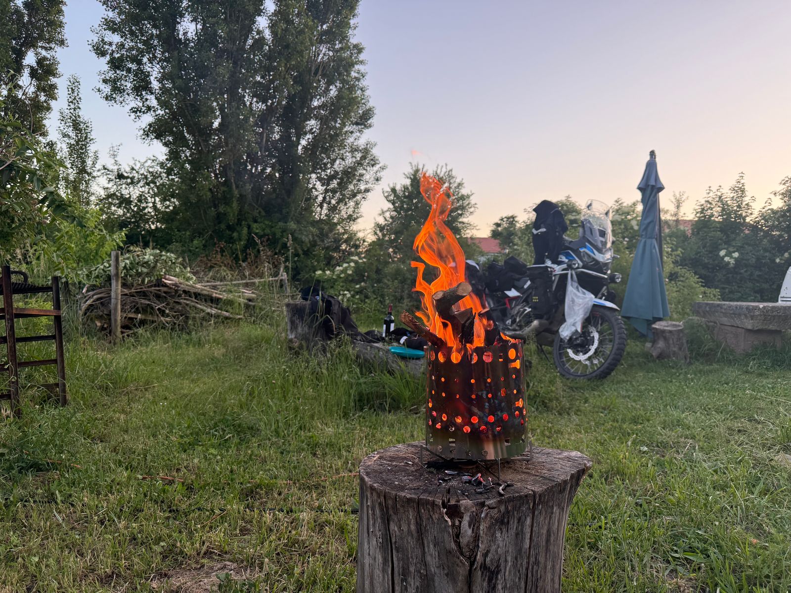 Alles anzeigennaja nen Feuer auf einem Hackklotz anzuzünden - selbst in einem Metallbehälter - erachte ich nicht als sehr sinnvoll..