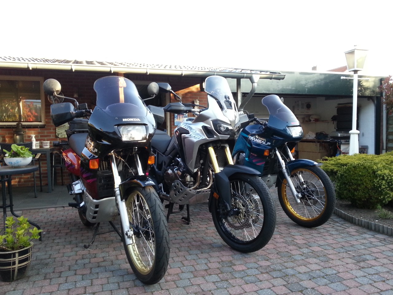 zwei weitere Honda Transalpen hier, damit die Töchter auch mitfahren können.