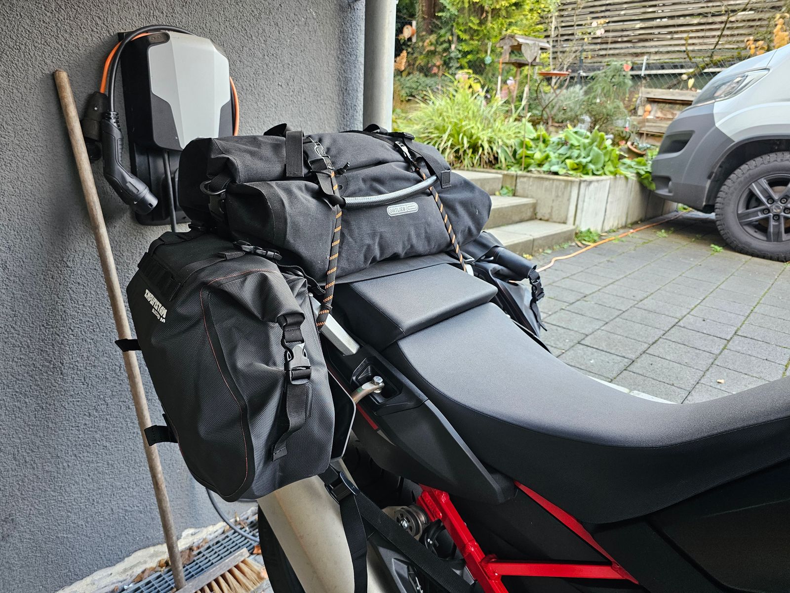 Die Taschen sind Größe M ich würde allerdings evtl. die L nächstes mal nehmen. Für ne Wochentour ohne Zelt in AirBNBs sollte es allemal reichen. Großer Touratech Sack für Zelt und Schlafsack sind auch noch vorhanden falls mich die Campingwut mal überkommen sollte,....