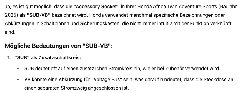 Die meisten Sicherungsbezeichnung sind ja eher klar, einige konnte ich nicht recht deuten. Ich habe also erst in der Bedienungsanleitung dazu nichts gefunden und dann bei ChatGPT mal nachgefragt. Und ChatGPT meinte: