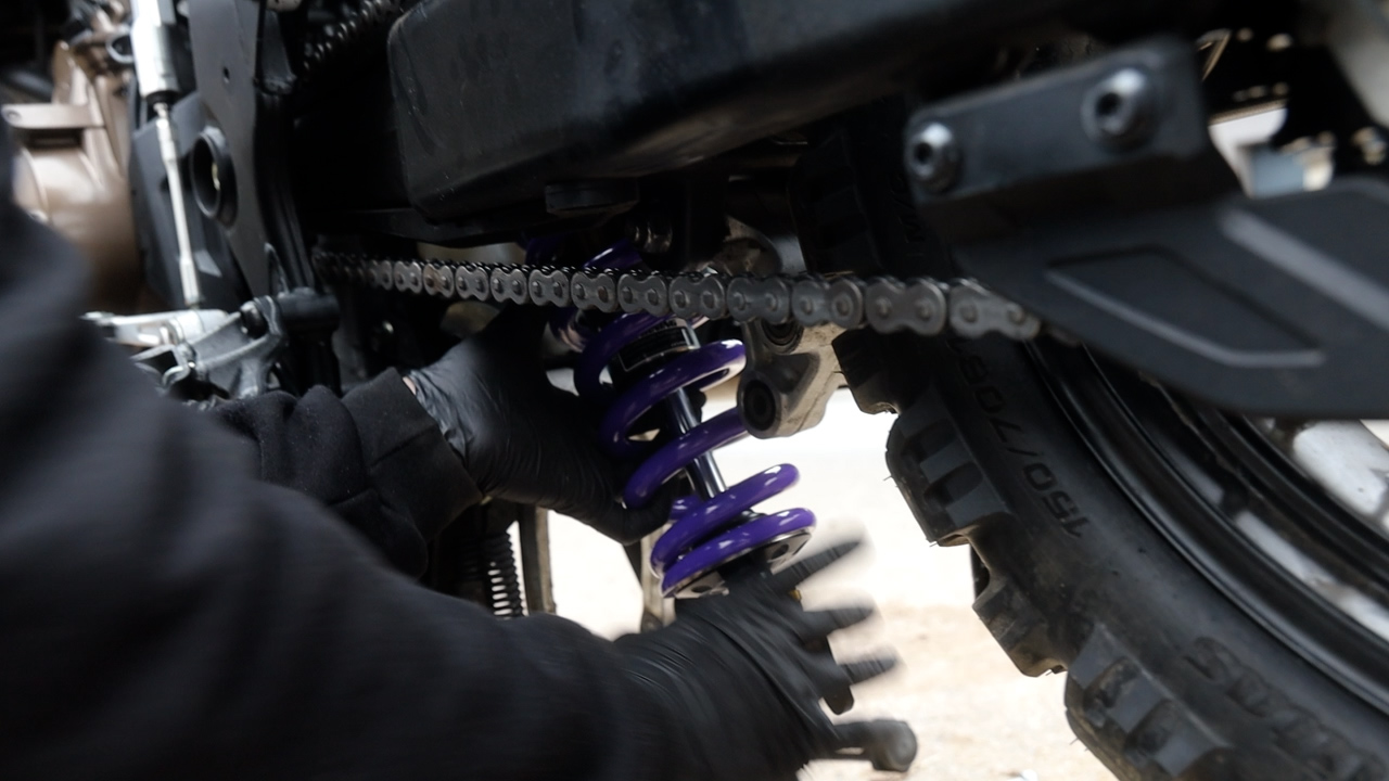 Der Ausbau vom Stoßdämpfer war ein wenig lästig wegen dem Zentralständer, da muss man schon ordentlich fummeln.