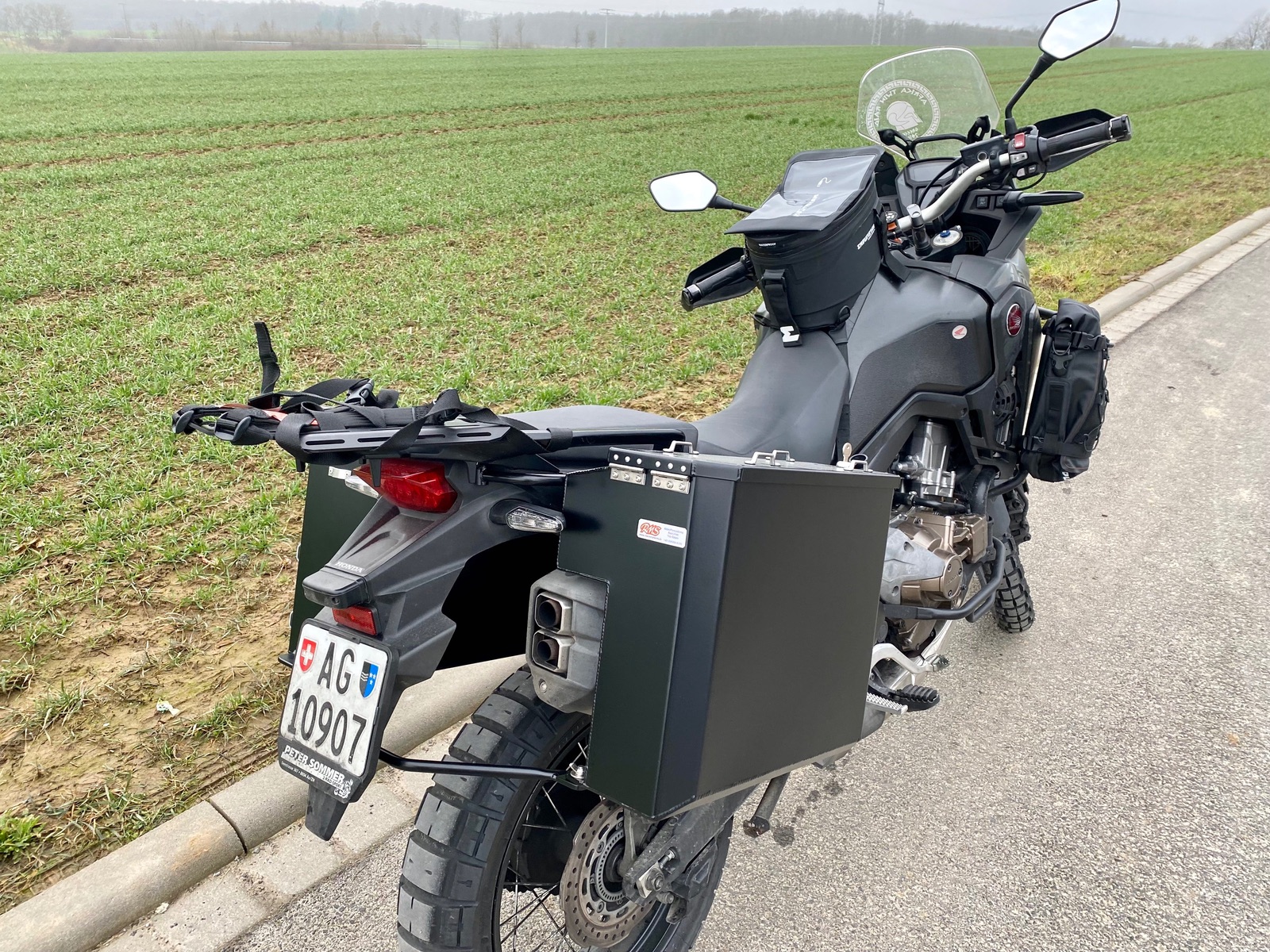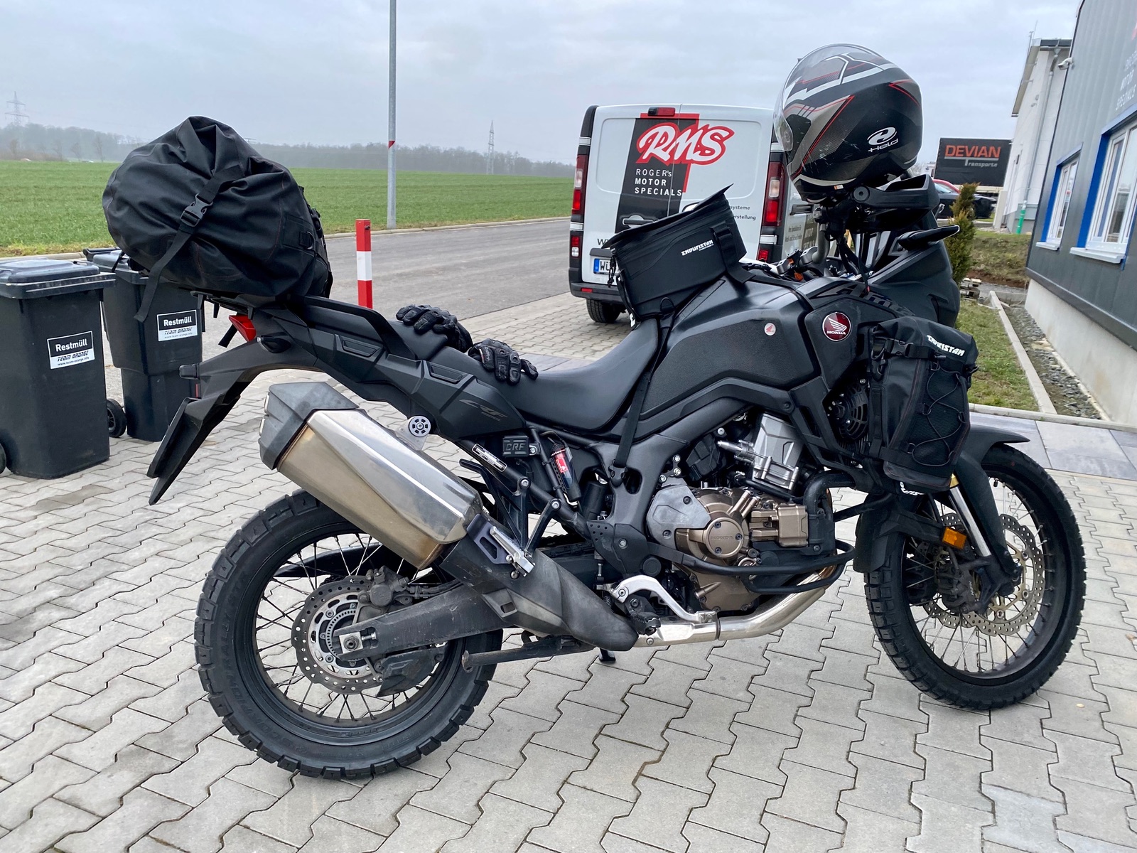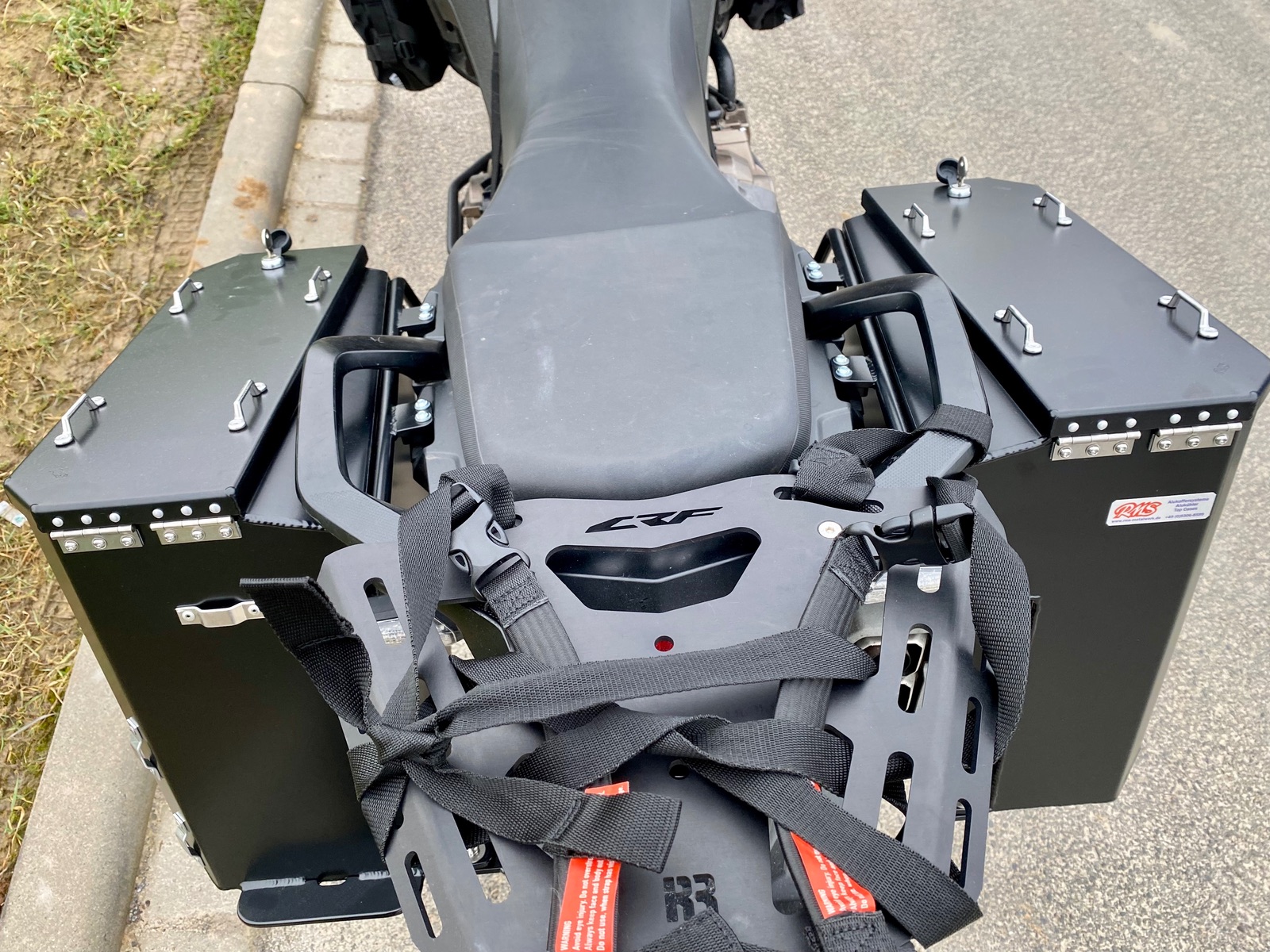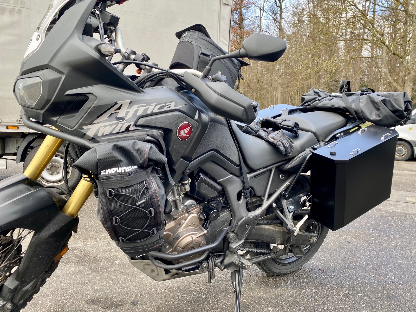Hatte erst noch Kanister angedacht die RMS auch gemacht hätte, aber auf der Silkroad sind es nur kurze Strecken wo ich mit dem normalen Tank nicht hinkomme und da improvisiere ich entweder lokal wie in Nepal und hab kein zusätzliches Gewicht im Hauptteil der Strecke dabei oder mache mit auf den Träger hinten noch den Rotopax drauf, muss mal schauen ob der auf die zwei Bohrlöcher mit der Halterung passt. Die zwei kleinen Givi 2l Dinger tun es vielleicht auch und sind an der Gurtbandlaschen schnell fixiert.