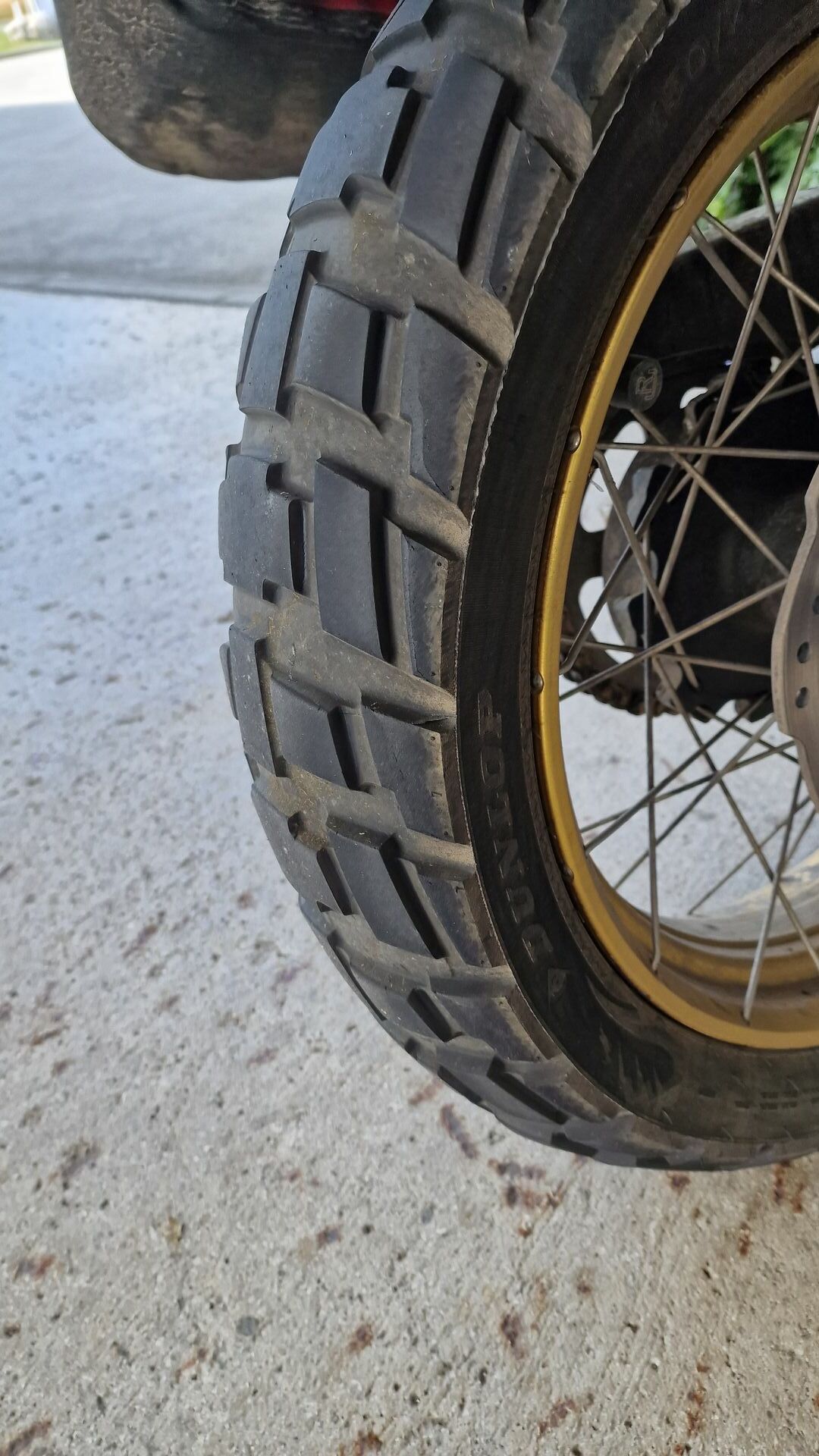 Mein Wunsch wäre es, diesen Reifen auch auf meiner Honda CRF 300 Rally fahren zu können. Da ist bislang der Bridgestone Battlax Adventure AX41 drauf, der auch sehr gut ist, gefühlt schätze ich den Dunlop aber leicht besser ein.