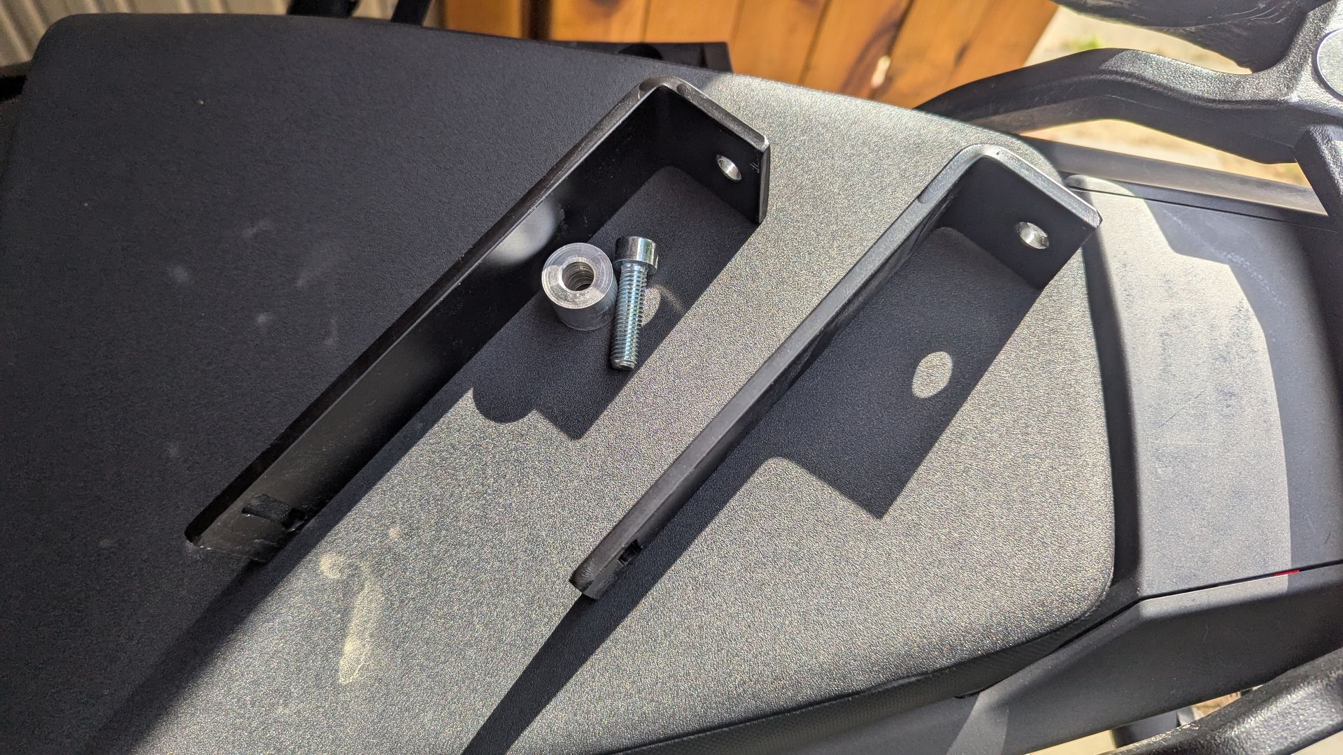 Alles anzeigenDas sieht interessant aus. Ich habe gerade mein Mopped nicht am Schreibtisch: Sind die Gewinde für die Schrauben schon serienmäßig am Motorrad? Und sicherlich müssen die Bügel ab, wenn man doch mal Koffer dran montieren möchte, oder?