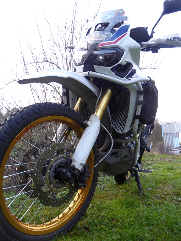 Die AT fährt mit einem 150er Schlappen und der hat einen dicken Mittelsteg, der auch sehr lange gerade Strecken mitmacht. Ich montiere nur noch den Scout, auch wenn er auch Nachteile hat: