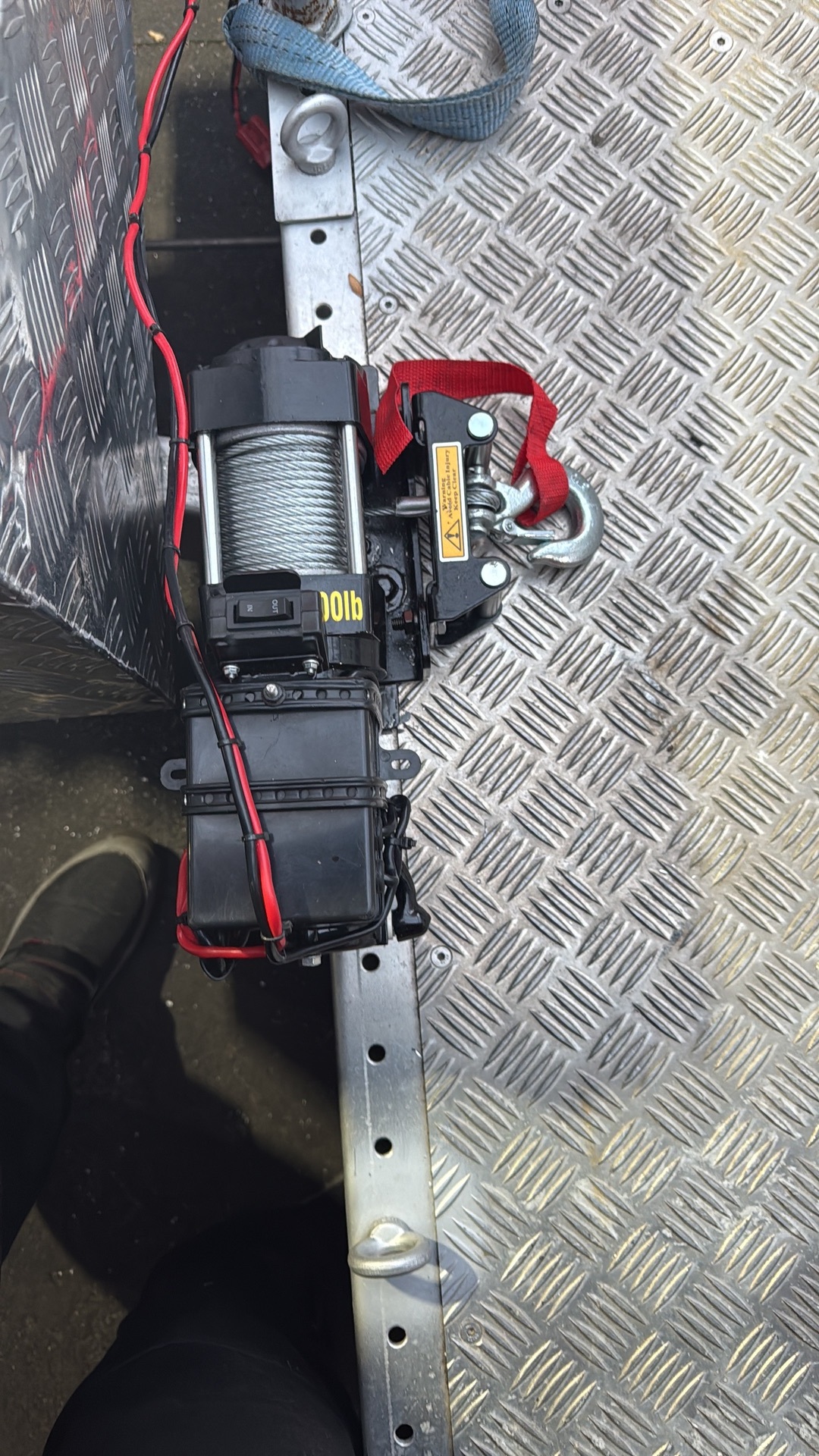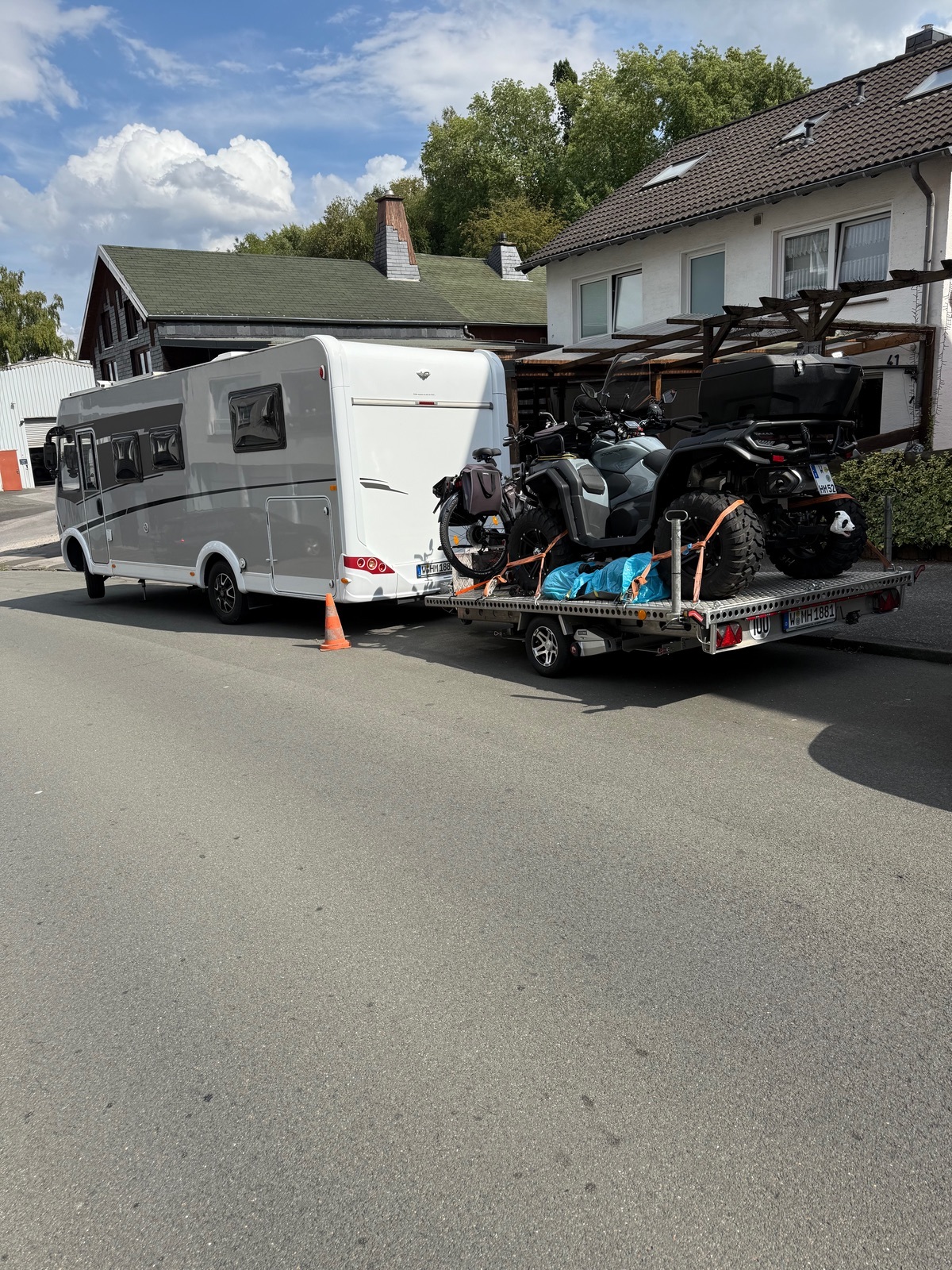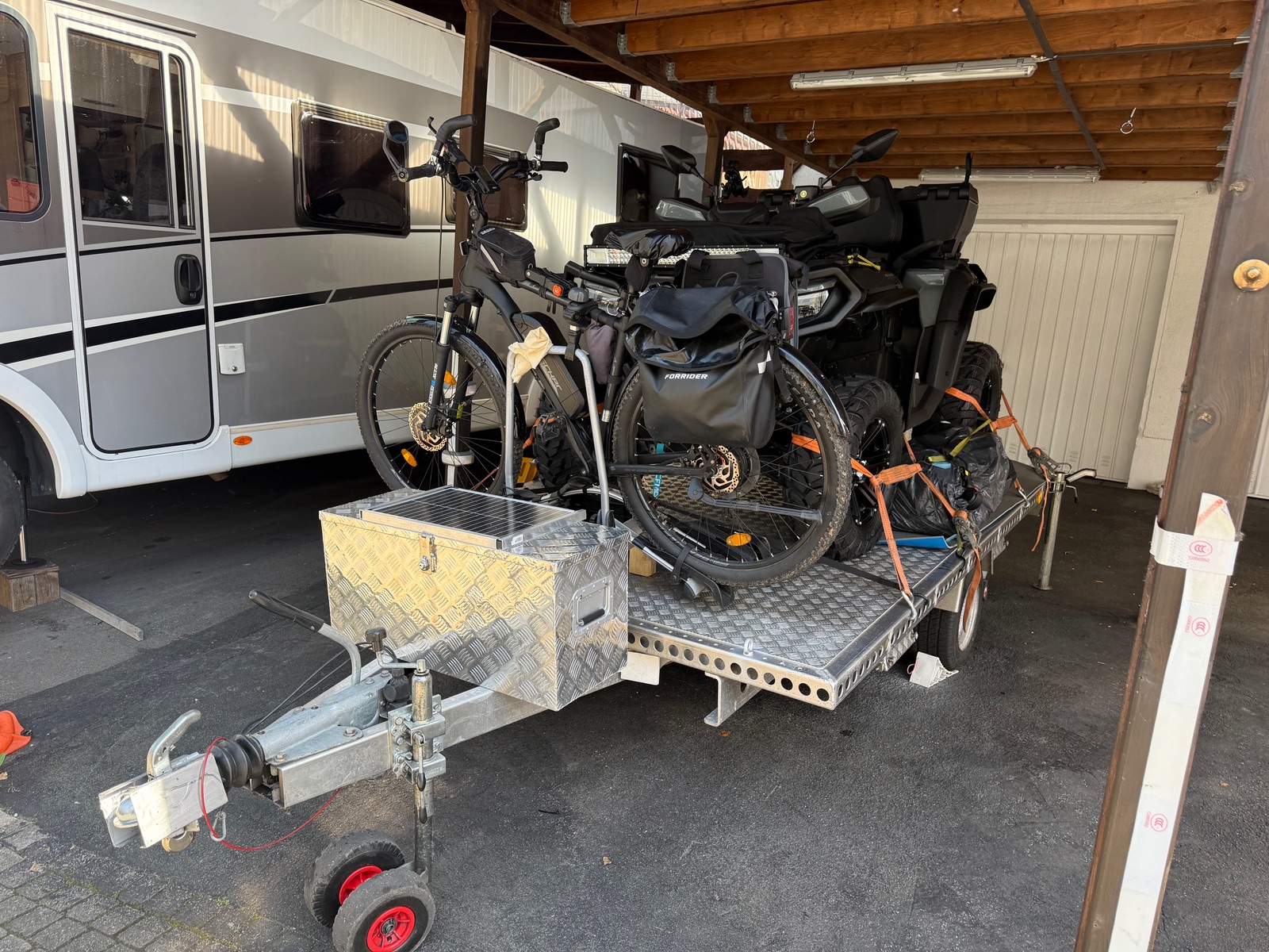 Die Winde kann die AT oder den Smart auladen. Und die Elektrische Deichselstütze erleichtert das Absenken des Hecks bis zum Boden wenn das Quad mal ohne die Rampen verladen wird und sichert bei Beladen mit Rampen ohne am Fahrzeug angekuppelt zu sein.