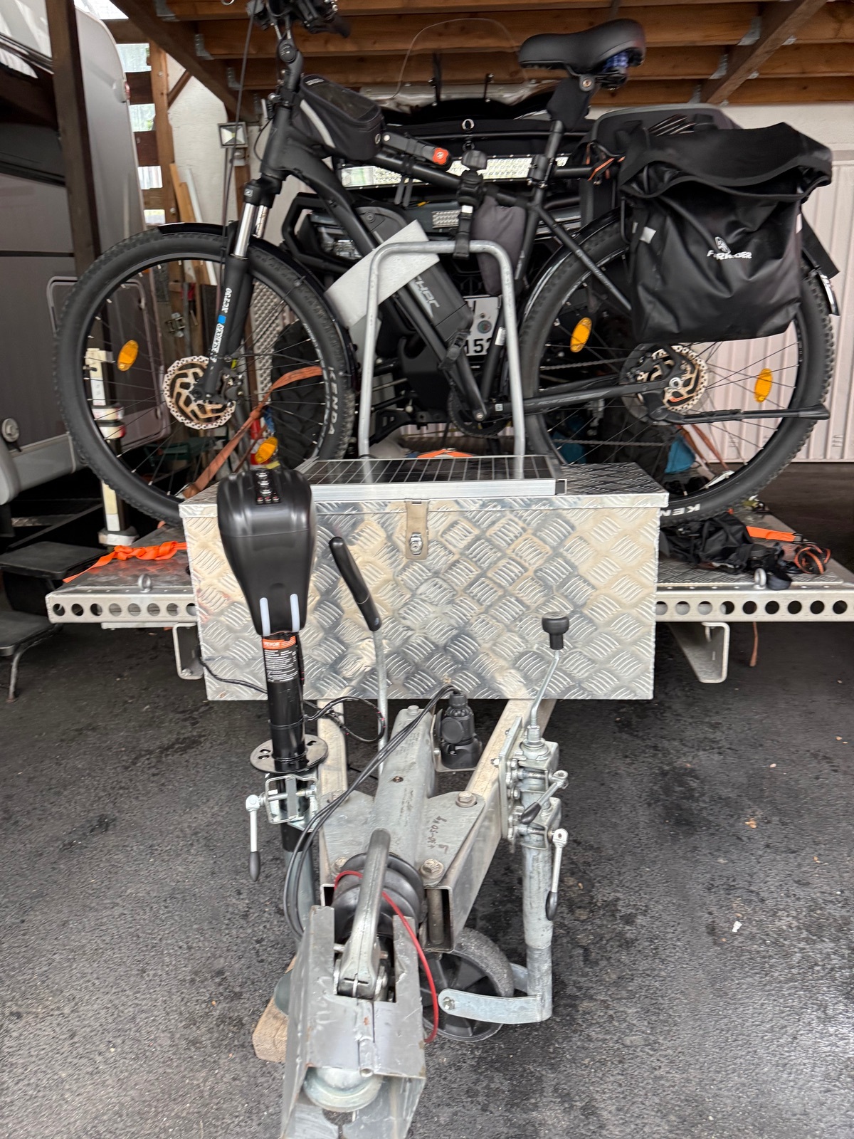 Der wird angetrieben von einer eigenen Batterie im Deichselkasten die wiederum durch ein solarpanel auf dem Deichselkastendeckel autark gehalten wird.