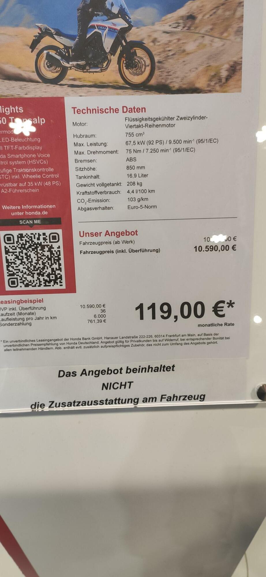ÖV fuhr aber heute in Dortmund. Ich war heute schon. Habe auf der Honda 750 Hornet und Transalp platz genommen. Und ja, die wären schon was . Am besten nimmt man gleich beide. Preis für die Transe 10590,- Euro UVP. Da komme ich schon wieder ins Grübeln.