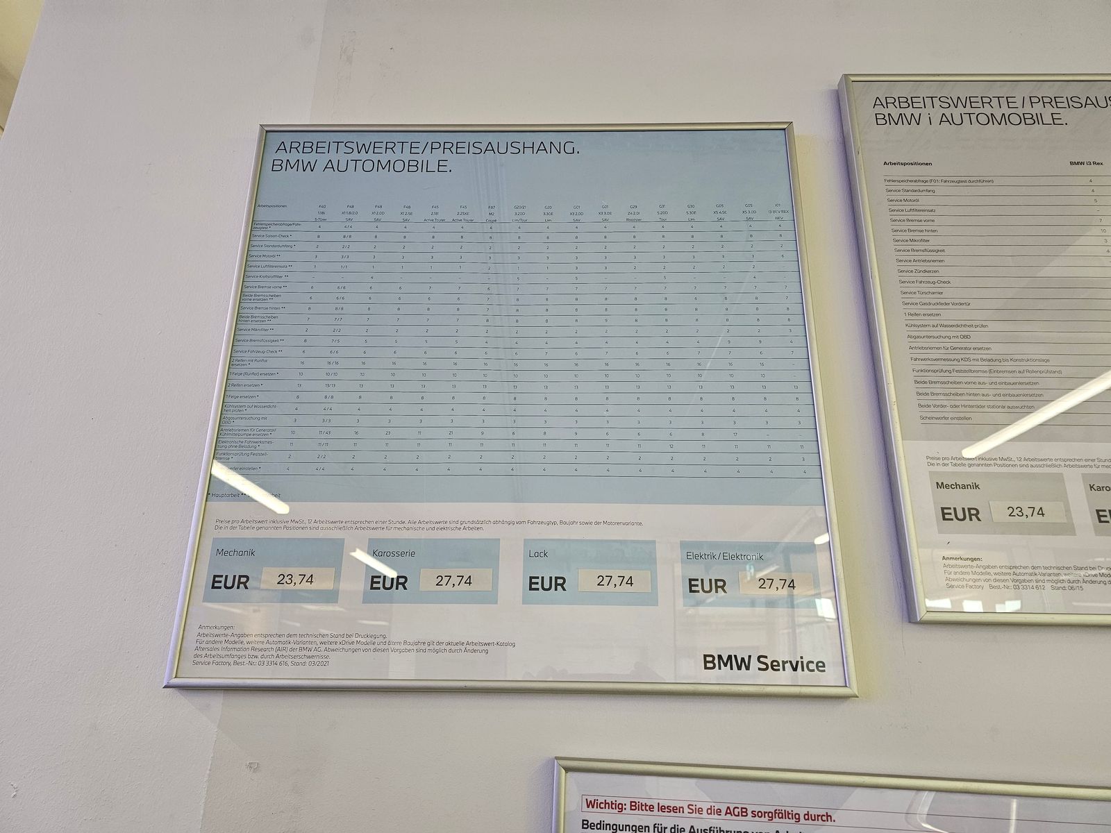 Das hat mit der AT jetzt nur noch entfernt zu tun, aber ich war heute in der BMW/Mini Niederlassung in Berlin am Kaiserdamm und die haben die Preise aushängen. 12AW=1h, D.h. 1AW sind 5 Minuten. Aber schaut euch mal die Preise an. Extra pro AW angegeben, damit man den Stundensatz nicht sofort bemerkt. Ne Stunde Mechanik kostet dort aktuell geschmeidige 285€, eine Stunde Lack, Karosserie und Elektrik sagenhafte 333€