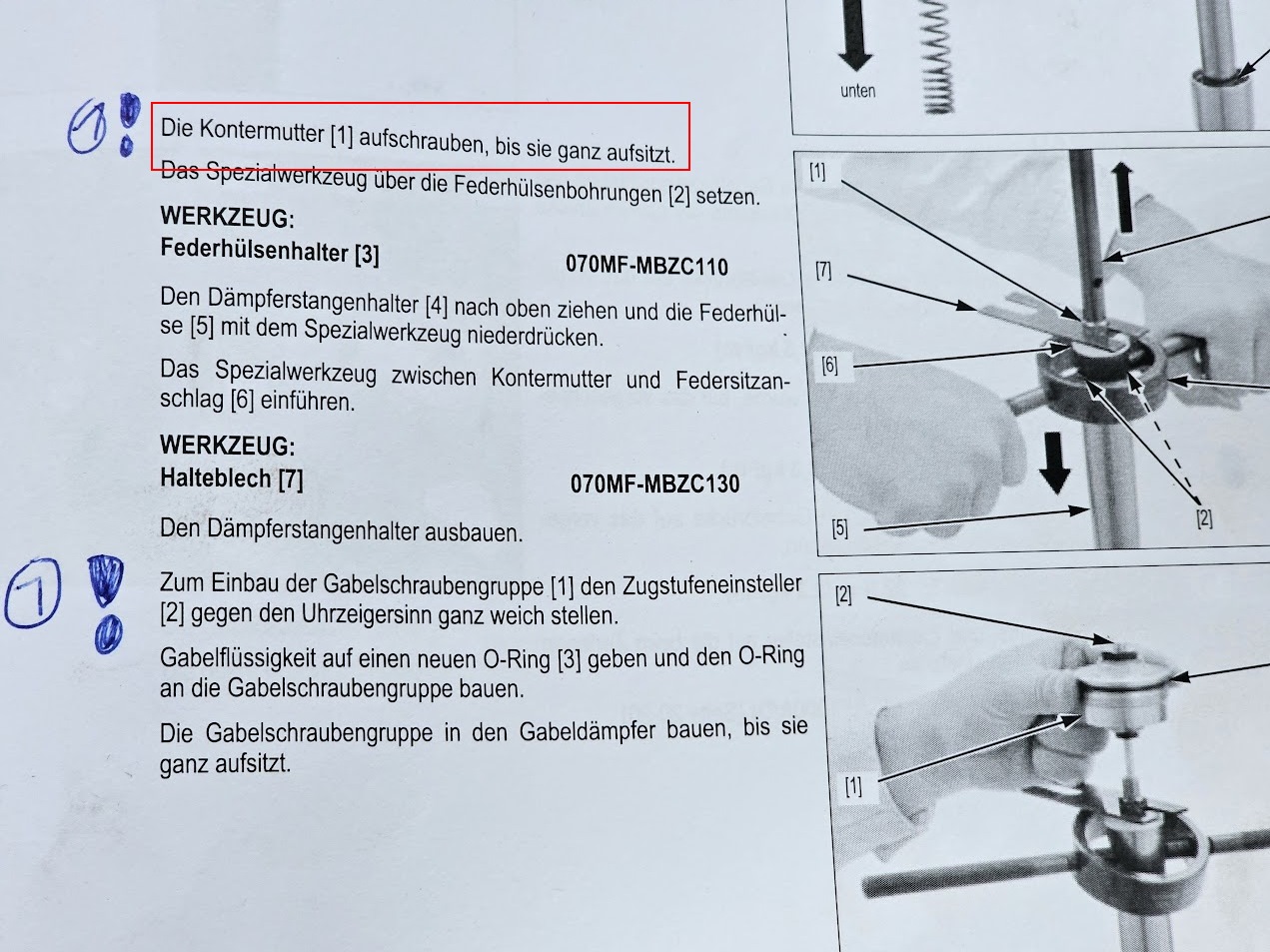 trueadventure.de/forum/thread/?postID=247690#post247690Ich bin heute nämlich halb verzweifelt an meiner Gabel, weil ich mich genau an die Honda Reparaturanleitung gehalten habe, die aber an der Stelle leider falsch ist. Ich habe erst heute den Aufbau der Gabel so wirklich verstanden, welche Schraube was genau macht und dabei hat der Beitrag extrem geholfen.