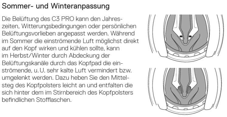 Bei Schuberth gibt's gern Lappen auf der Innenseite, die die Belüftungskanäle von oben/vorne verdecken. Das soll eine Sommer/Winter-Schaltung sein.