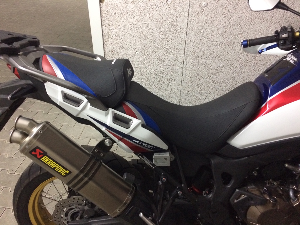 Und vor zwei Wochen bin ich dann über die Tricolor-Sitzbank von Bagster gestolpert. Da konnte ich nicht lange warten, auch da ich mit der Originalen nie so ganz total zufrieden war. Die ist ok, aber nicht mehr. Und da ich im Jahr ca. 25 - 30 TKM auf diesem Ding sitze muß es was Gescheites sein.